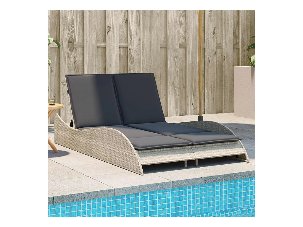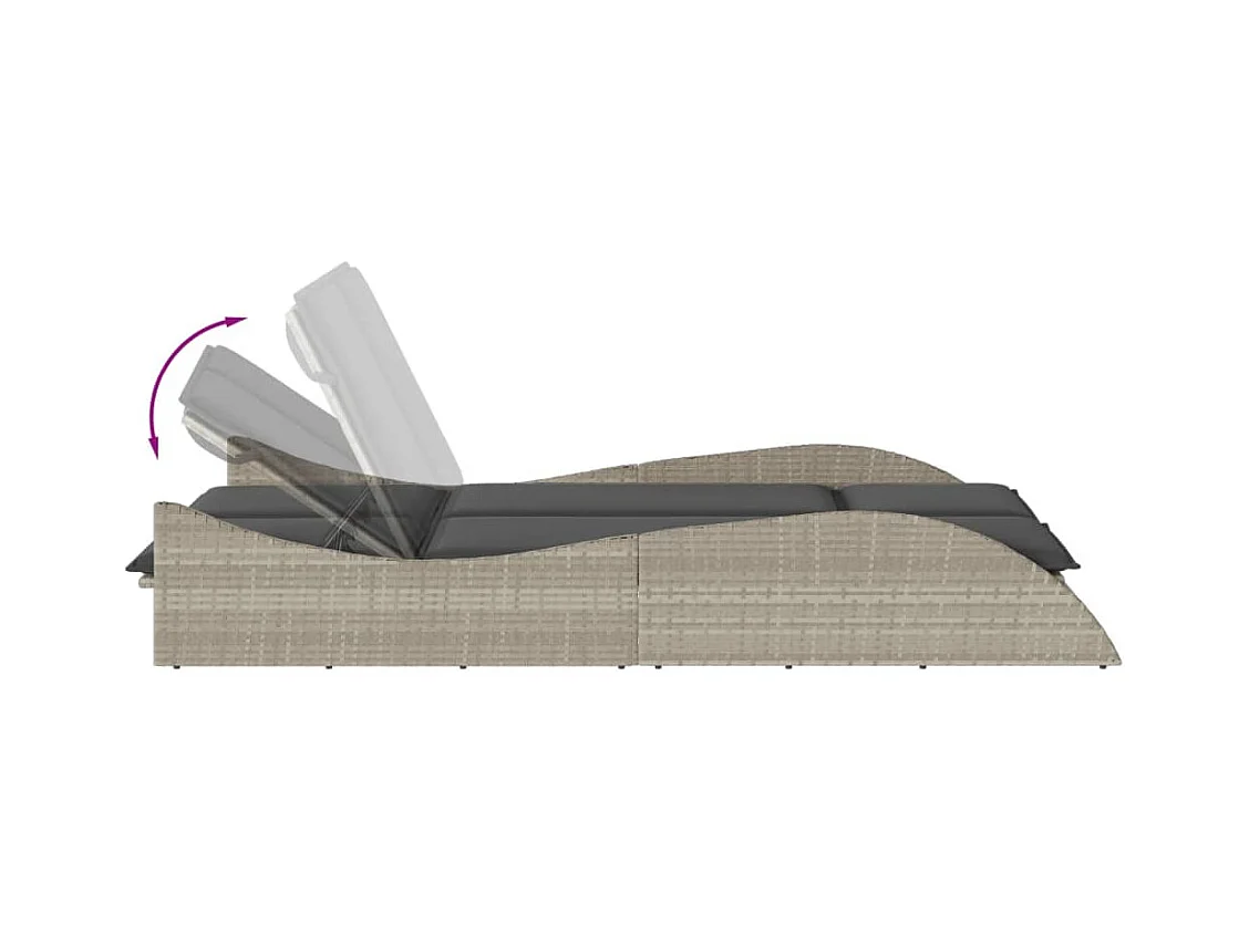 Espreguiçadeira com almofadas cinza claro 114x205x73 cm vime PE