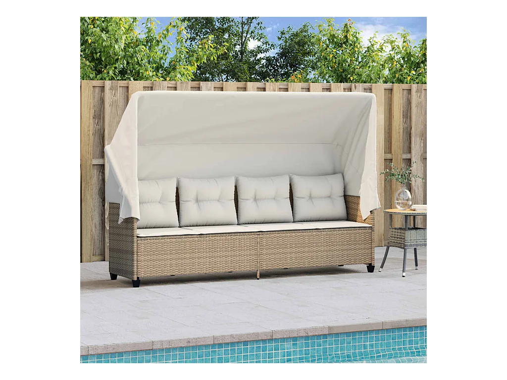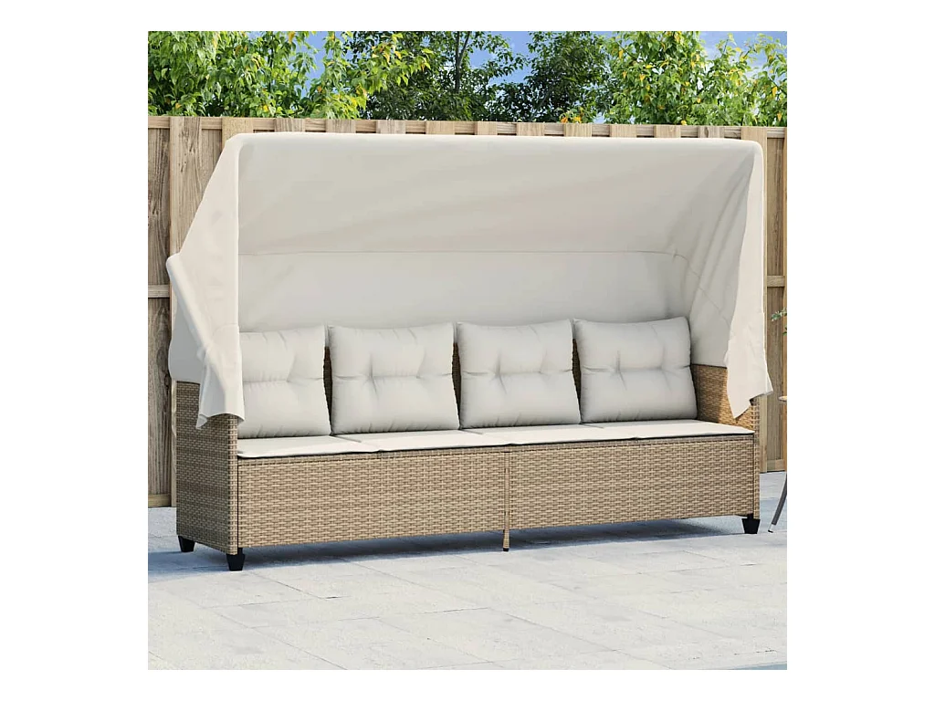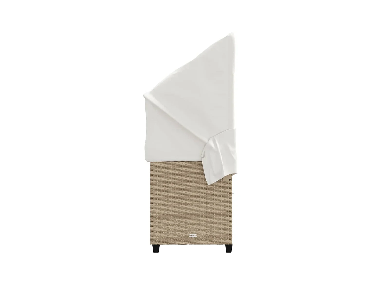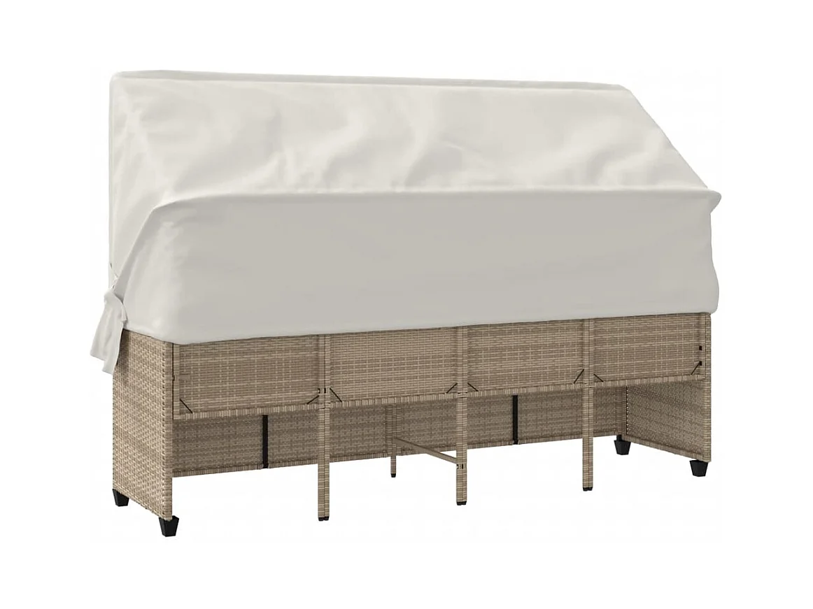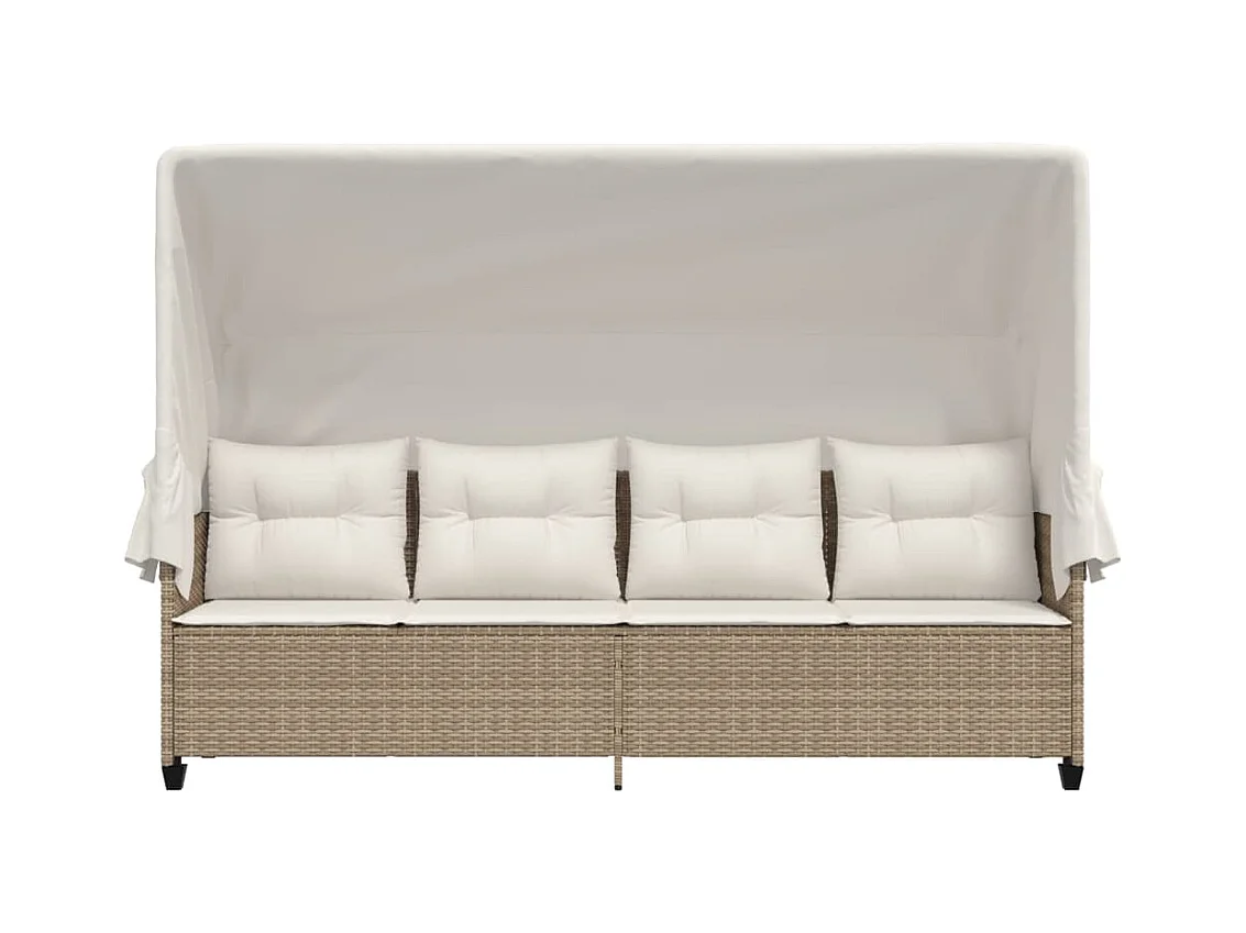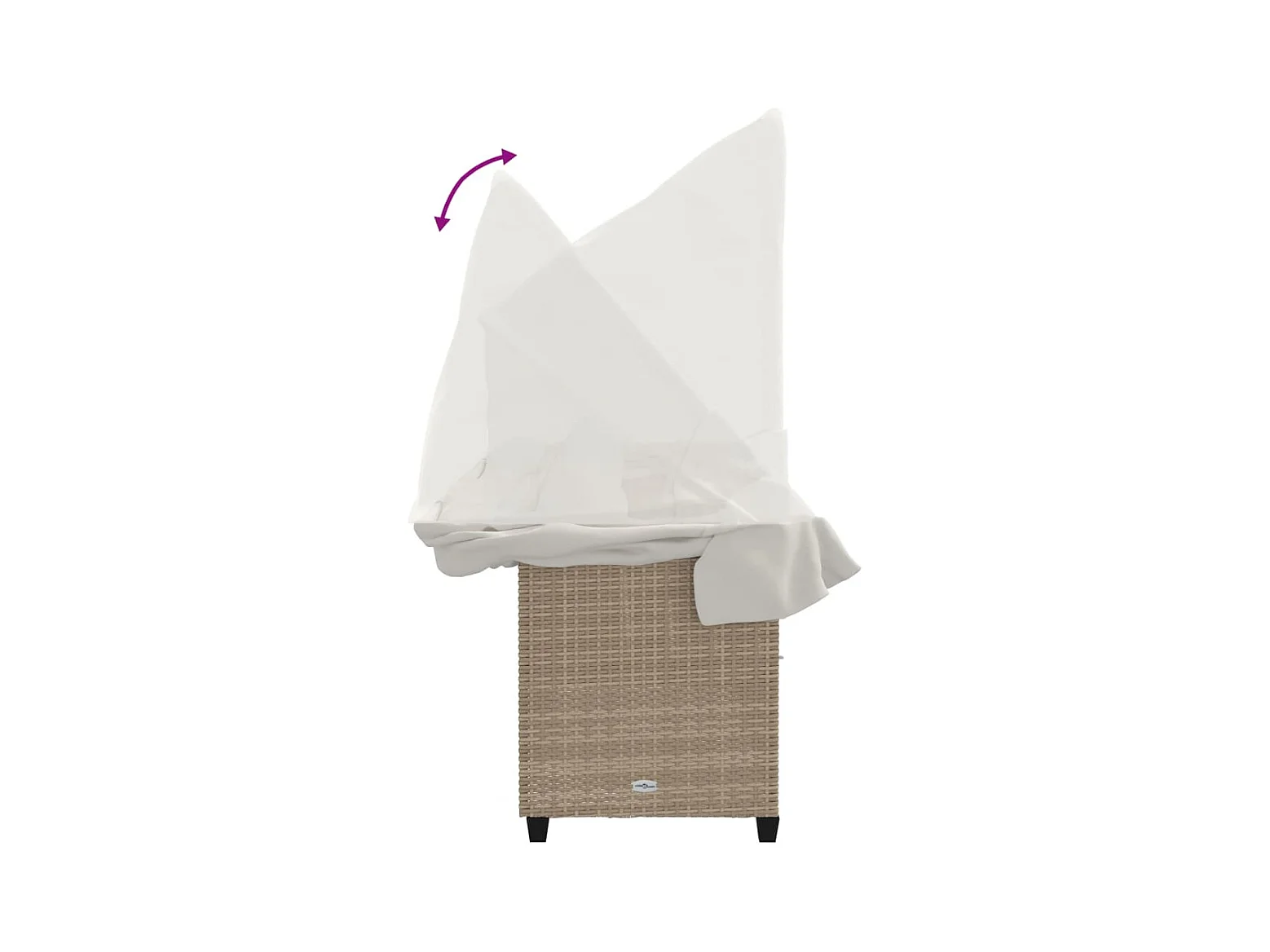 Espreguiçadeira com dossel e almofadas de resina tecida bege