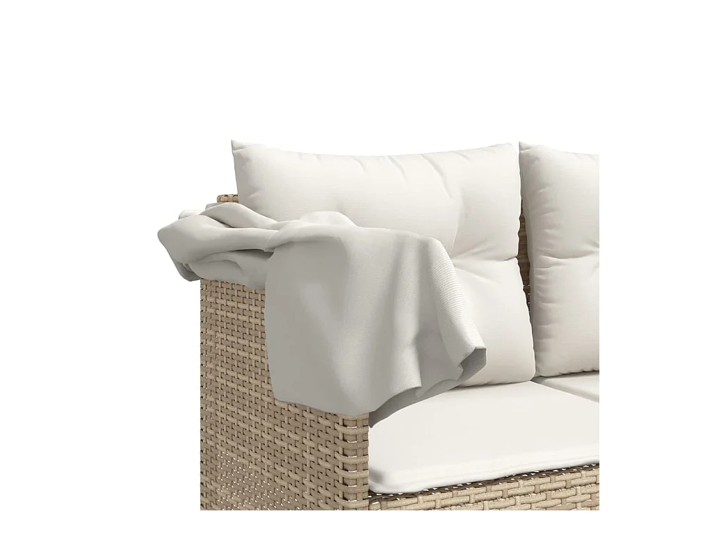 Espreguiçadeira dupla com almofadas e guarda-sol em vime PE bege