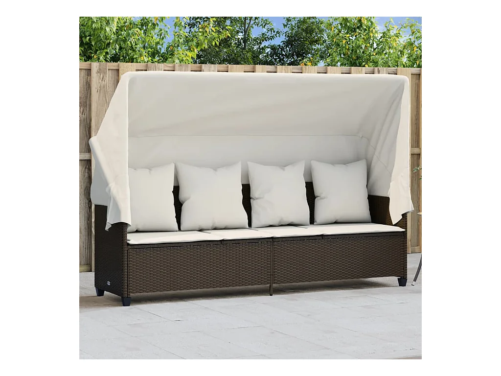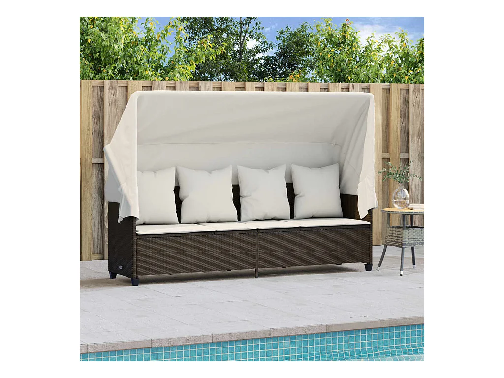 Espreguiçadeira com dossel e almofadas de resina tecida marrom