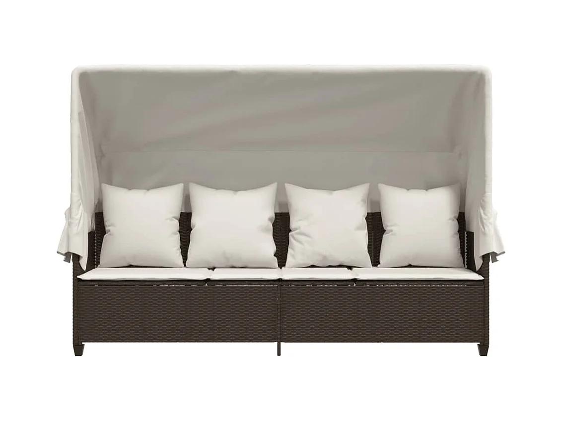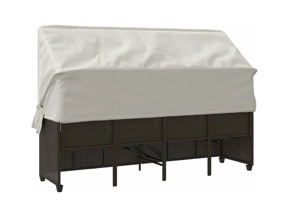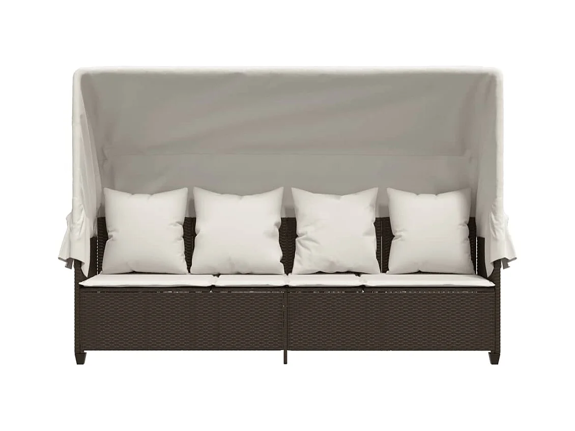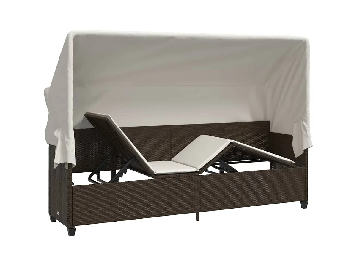 Espreguiçadeira dupla com dossel e almofadas de vime PE marrom