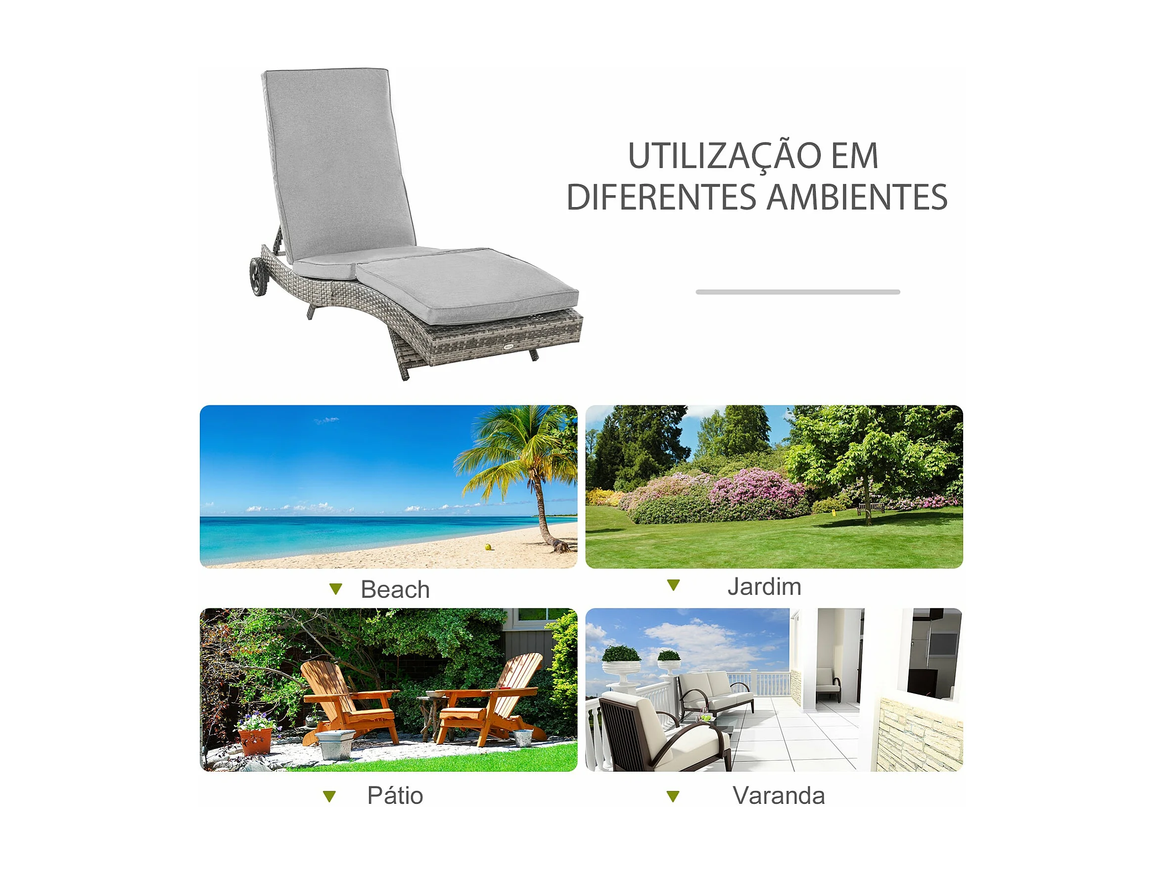 Espreguiçadeira de Vime Reclinável Outsunny com Rodas e Almofada - Conforto e Estilo para o Jardim