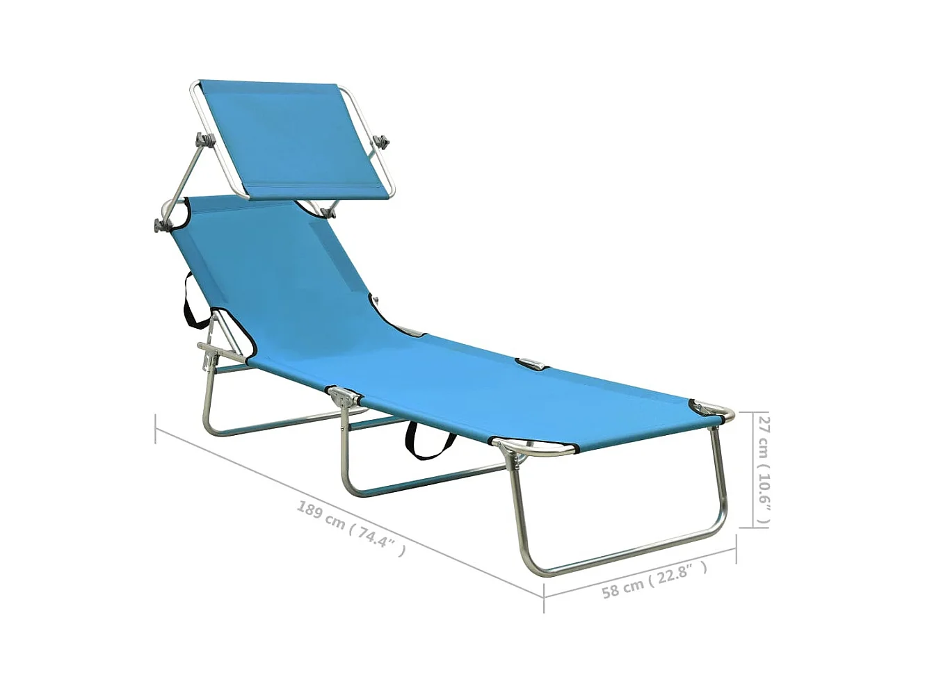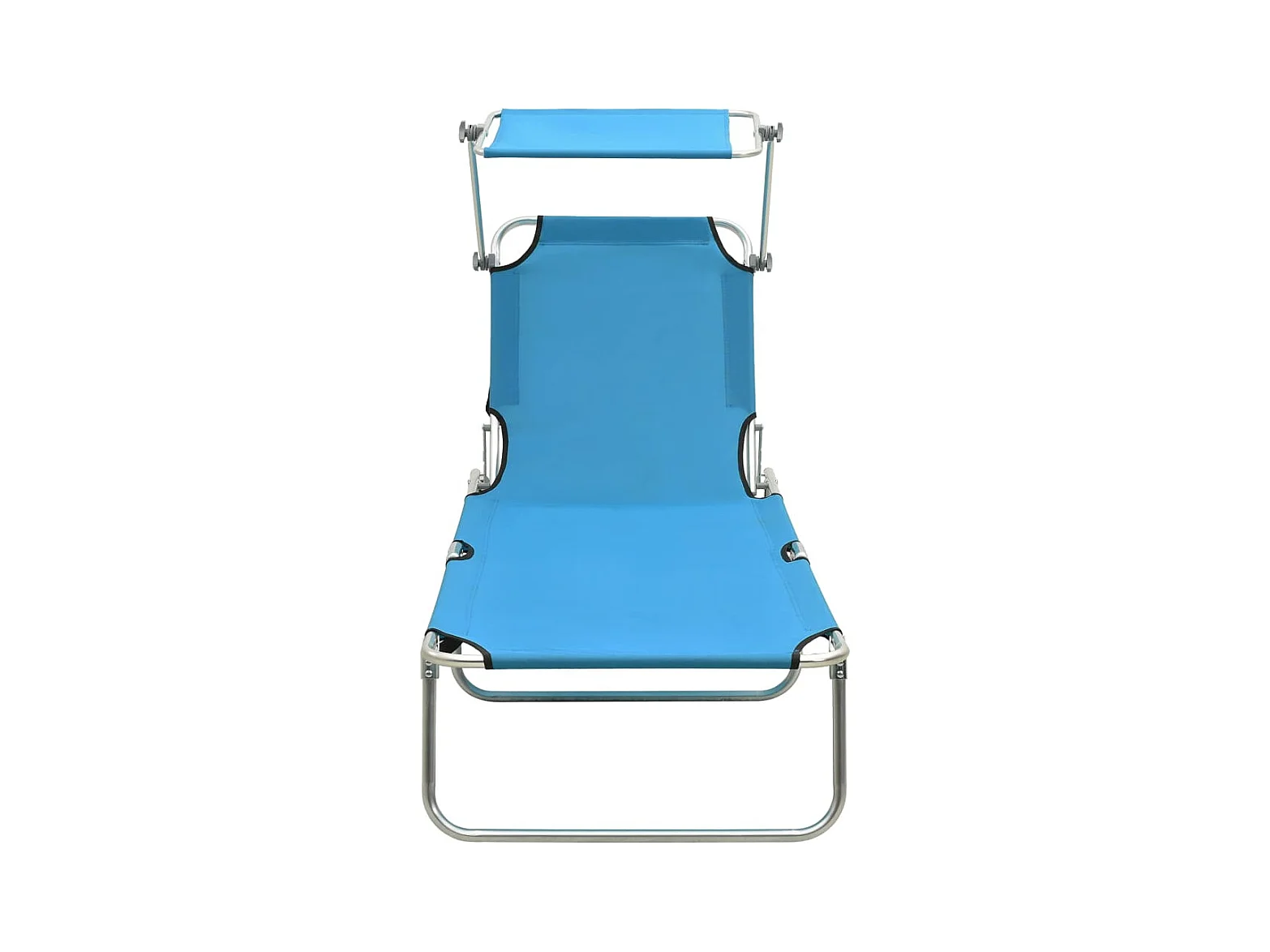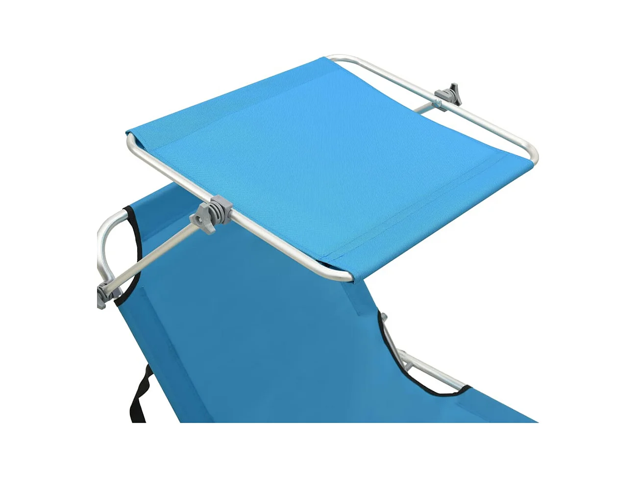 Espreguiçadeira dobrável com dossel em aço turquesa e azul