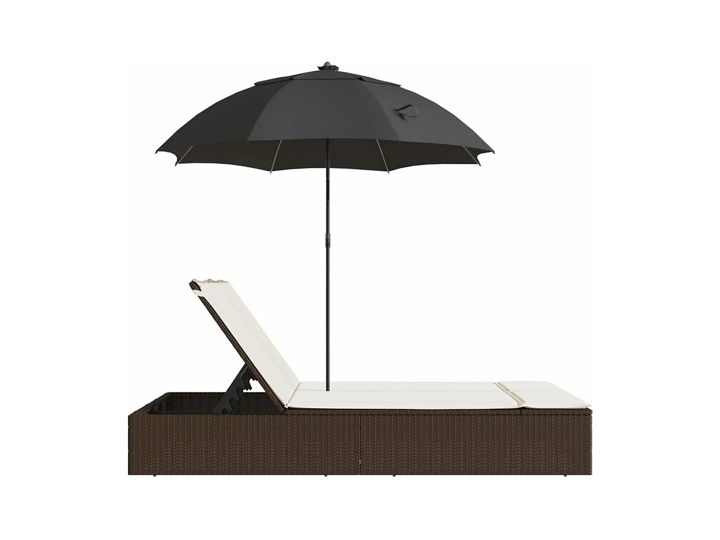 Espreguiçadeira dupla c/ almofadões guarda-sol vime PE castanho PT597313