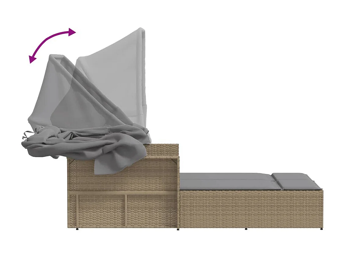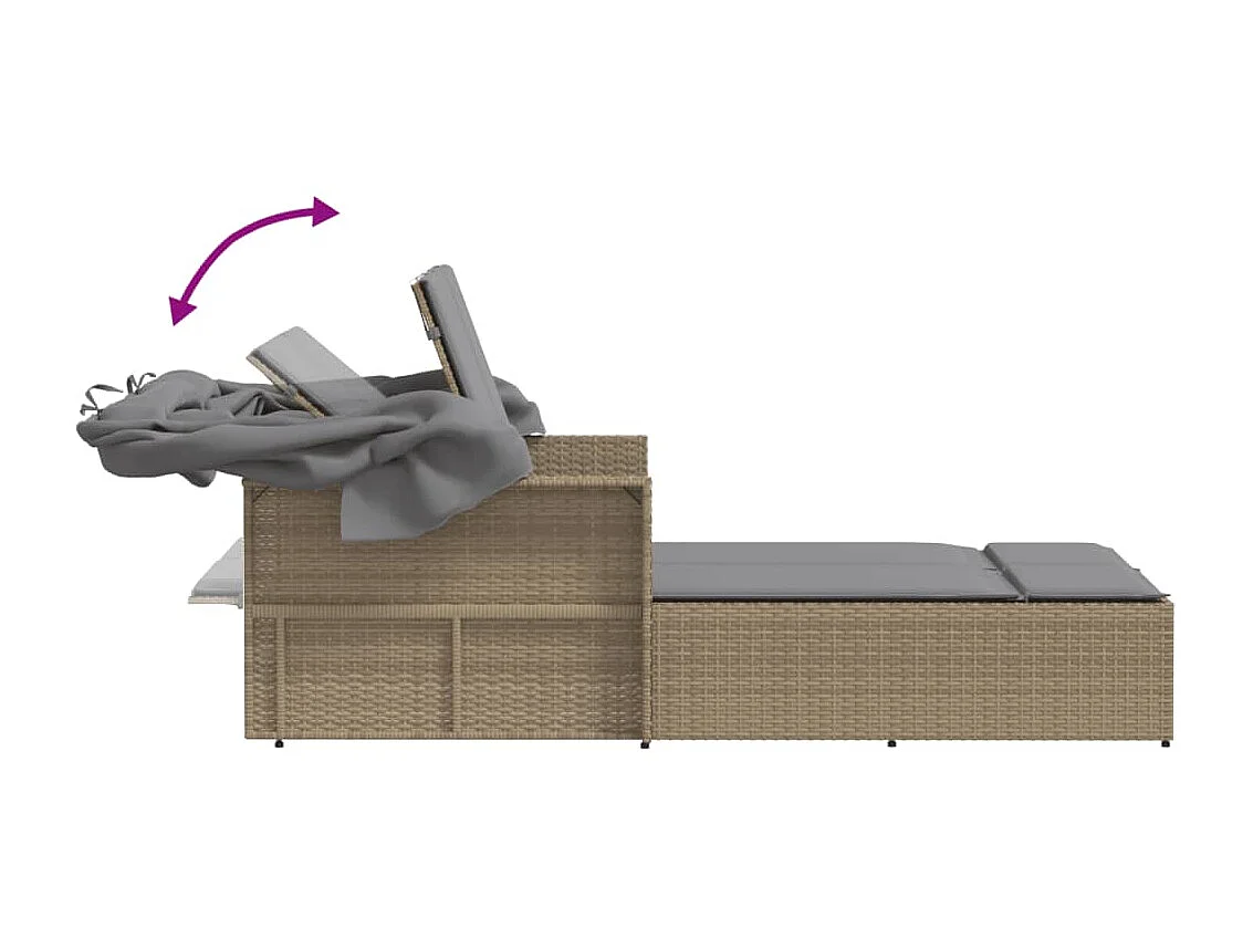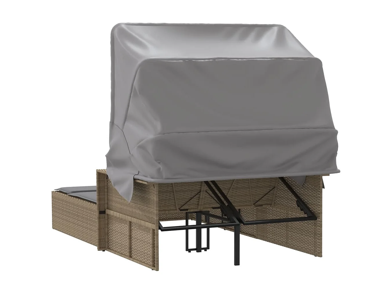 Espreguiçadeira dupla c/ toldo/almofadões vime PE mistura beges