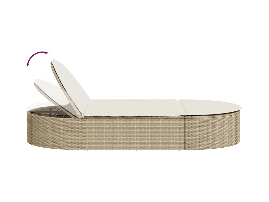 Espreguiçadeira dupla com almofadões vime PE bege PT395355