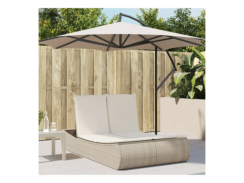 Espreguiçadeira dupla c/ almofadões e guarda-sol vime PE bege PT310706