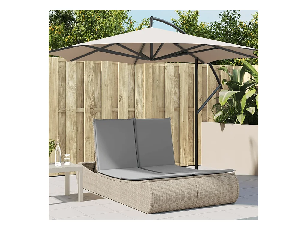 Espreguiçadeira dupla c/ almofadões e guarda-sol vime PE bege PT310706
