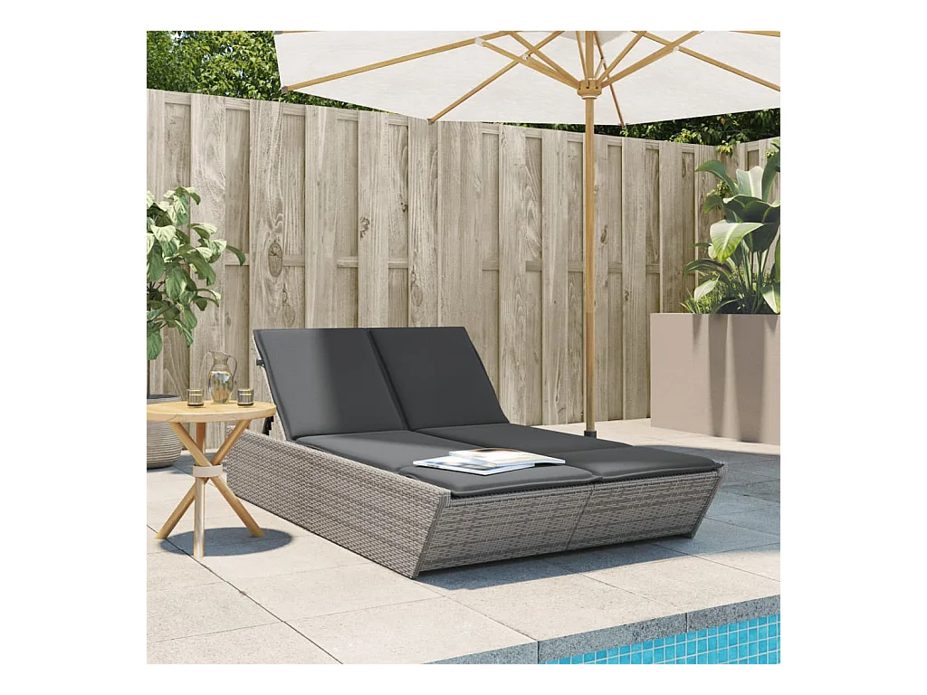 Espreguiçadeira dupla com almofadões vime PE cinzento