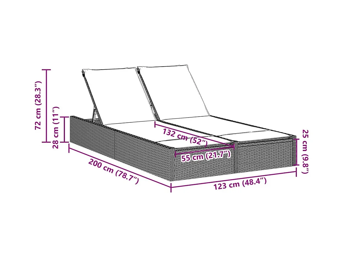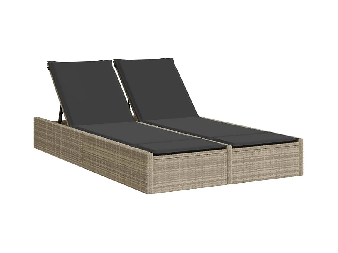 Espreguiçadeira dupla com almofadões vime PE cinzento-claro