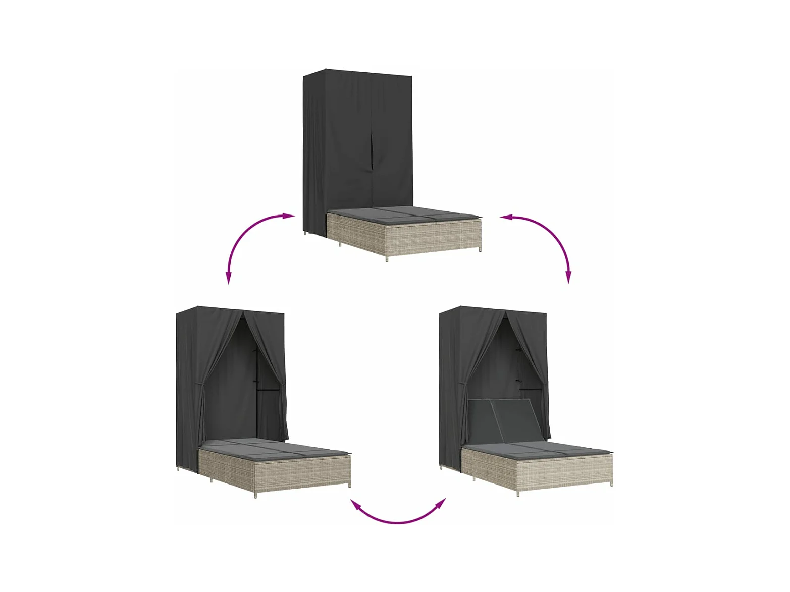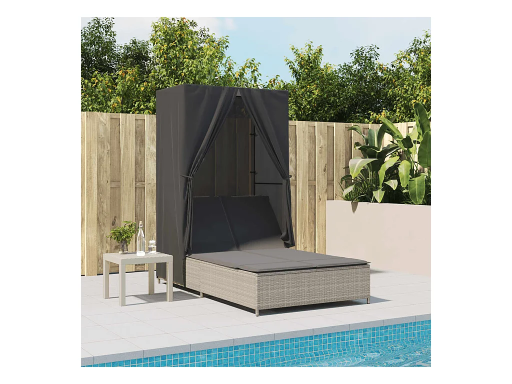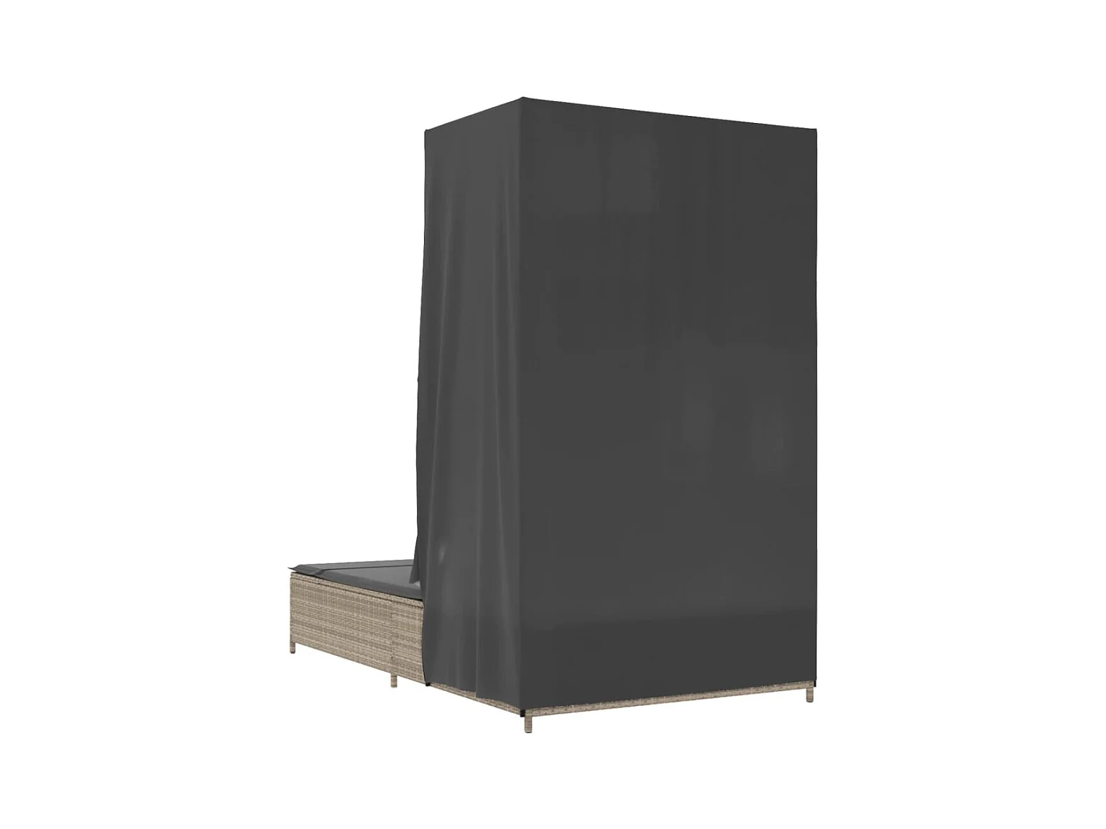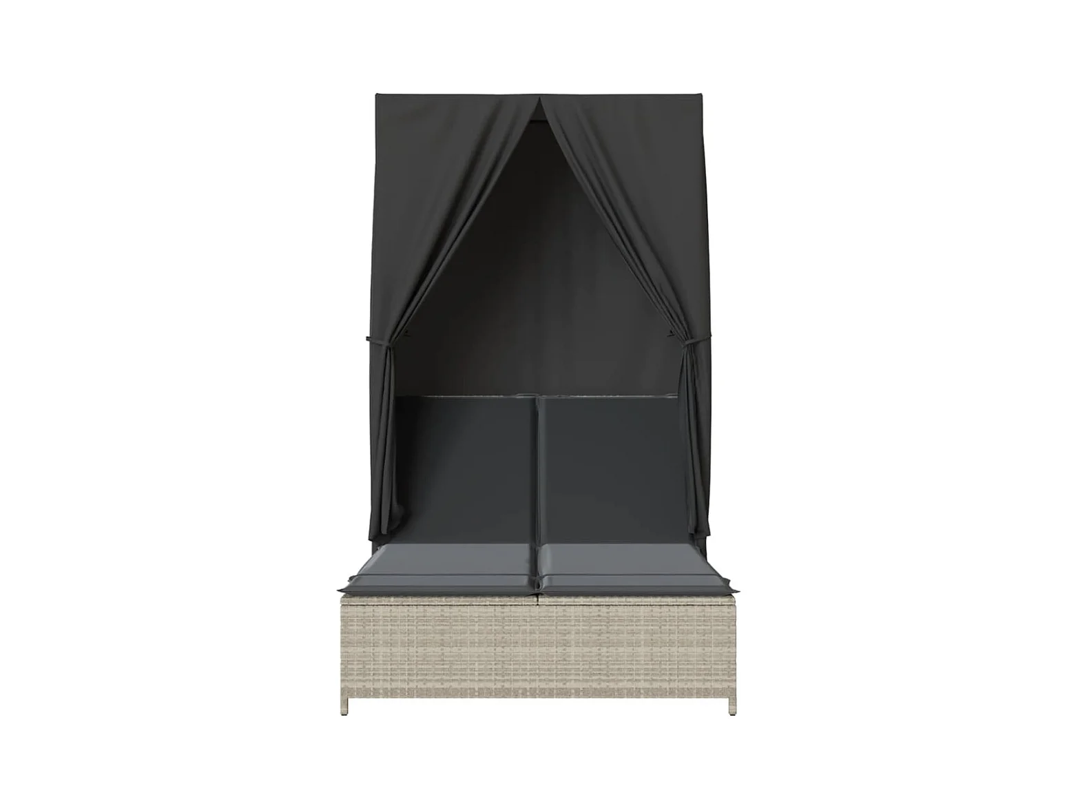 Espreguiçadeira dupla com teto e cortinas em vime PE cinza claro