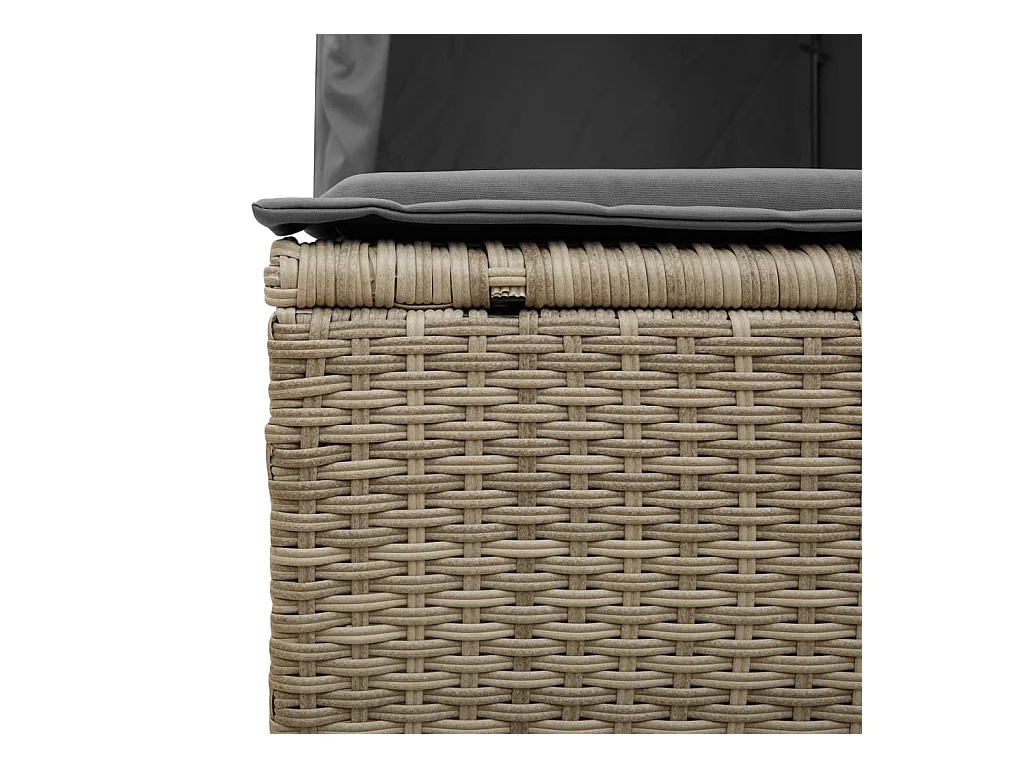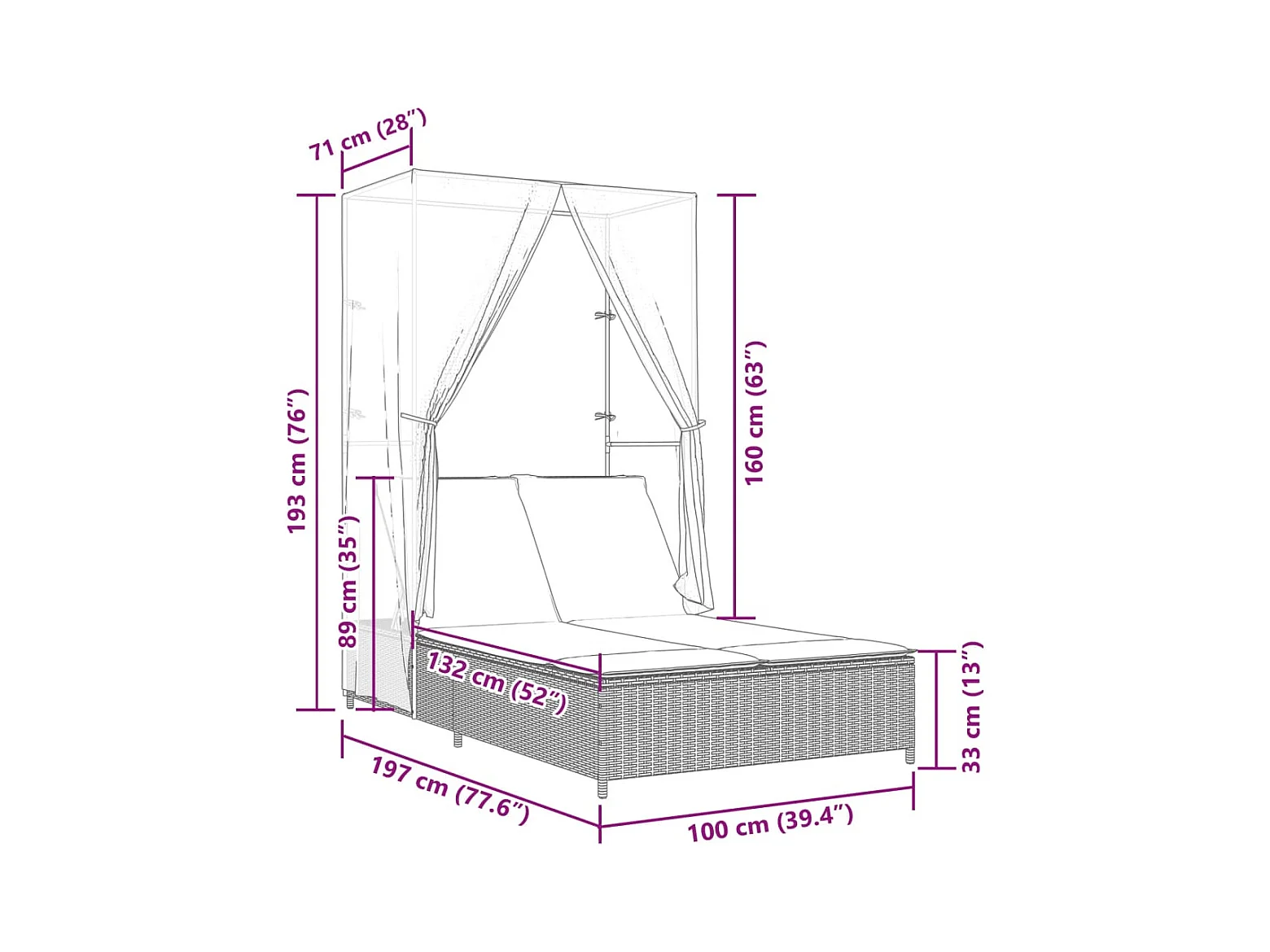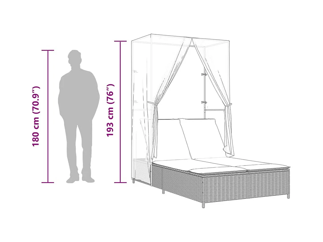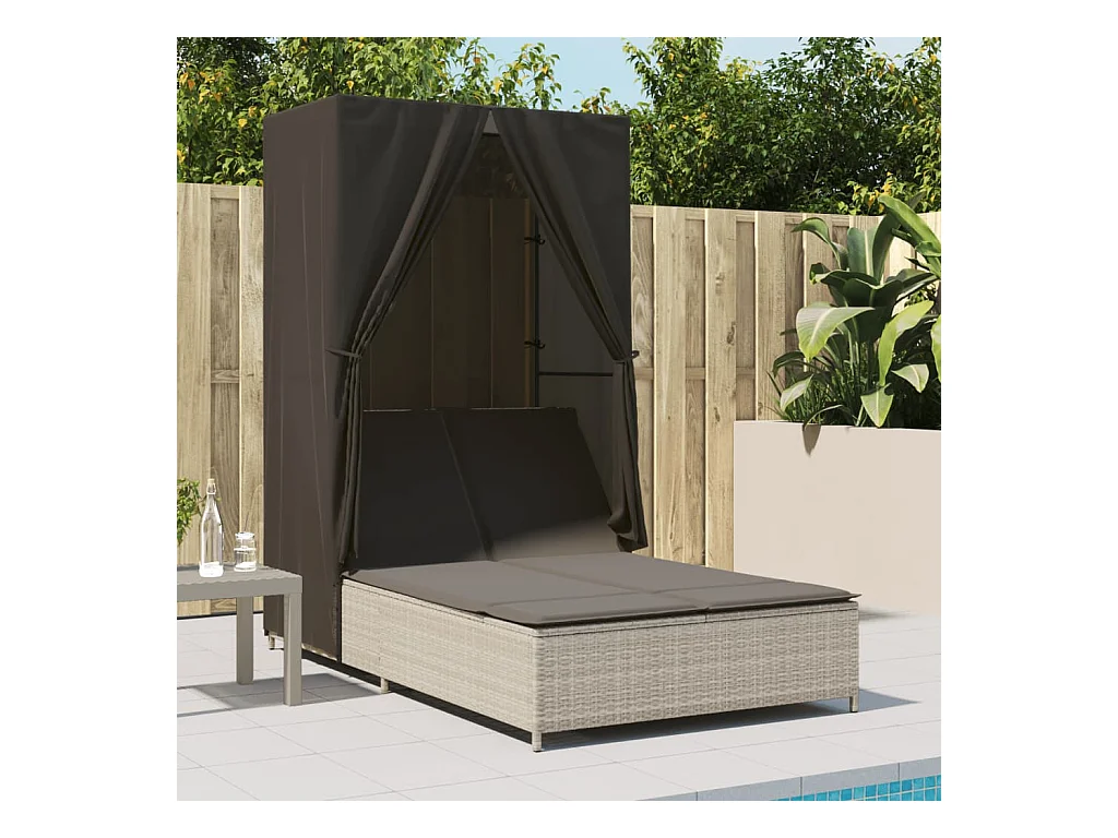 Espreguiçadeira dupla com teto e cortinas em vime PE cinza claro