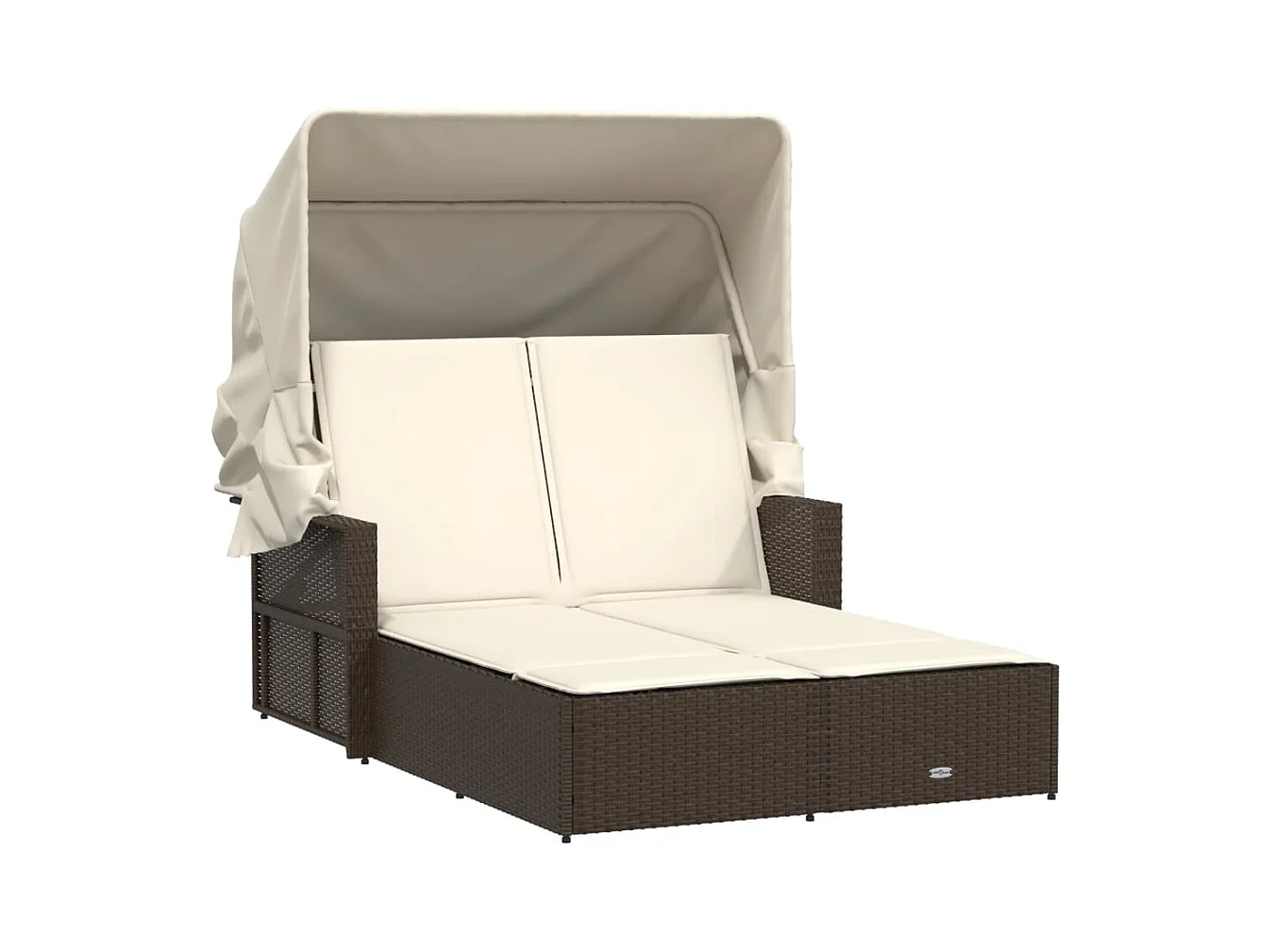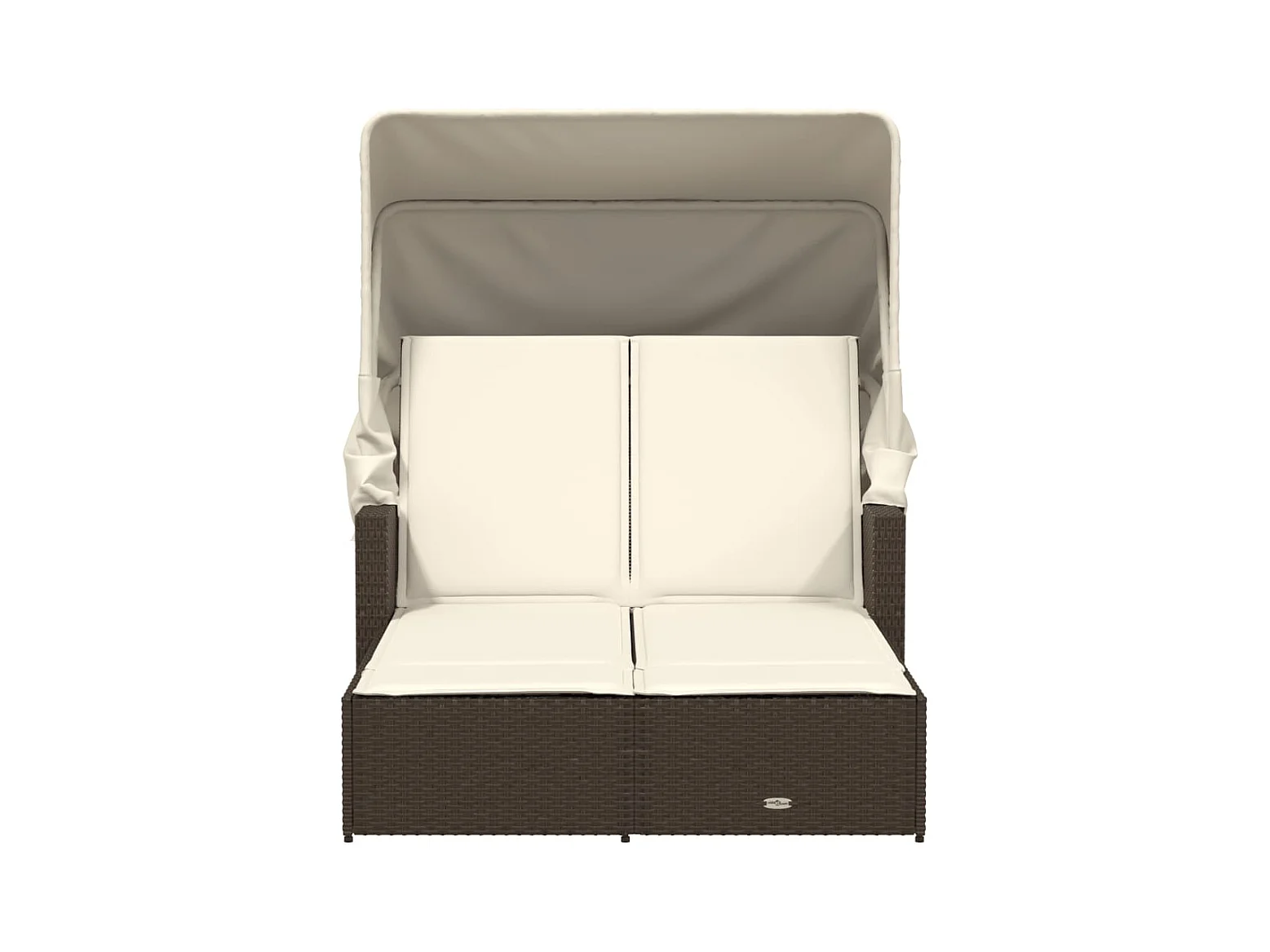 Espreguiçadeira dupla com toldo e almofadões vime PE castanho PT970108