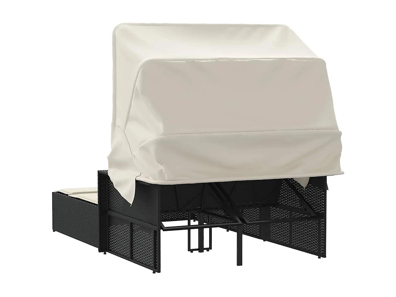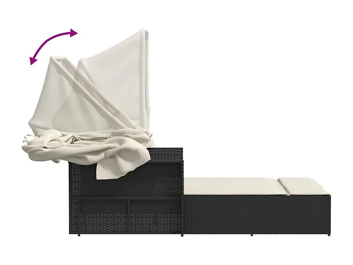 Espreguiçadeira dupla com toldo e almofadões vime PE preto
