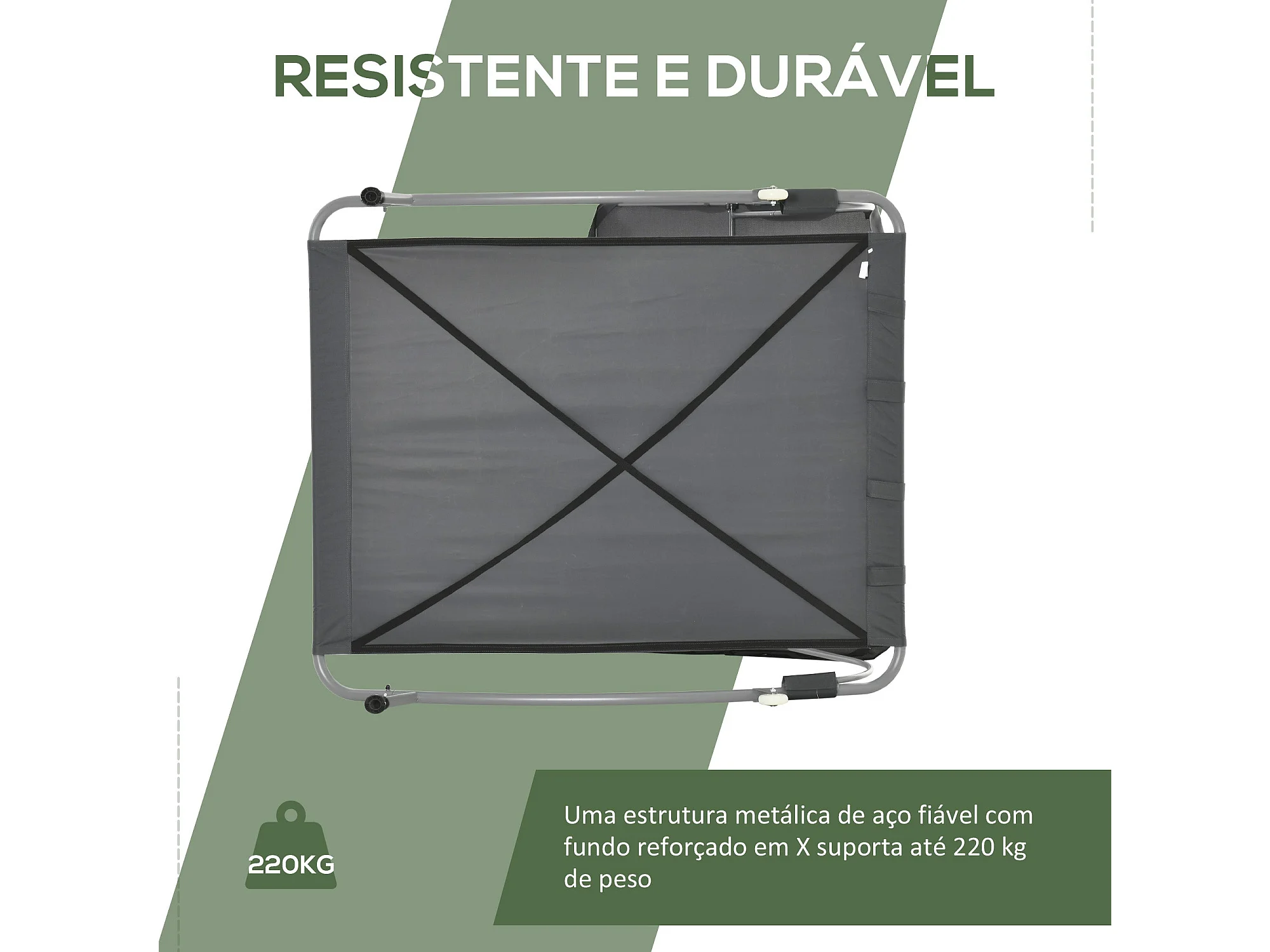 Espreguiçadeira dobrável c/ teto alumínio e textilene cinzento