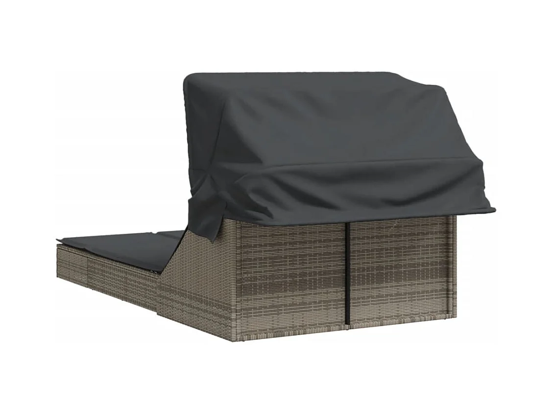 Espreguiçadeira dupla com teto e cortinas em vime PE cinza claro
