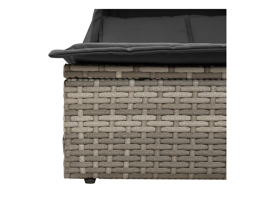 Espreguiçadeira dupla e almofadas e guarda-sol de resina tecida cinza