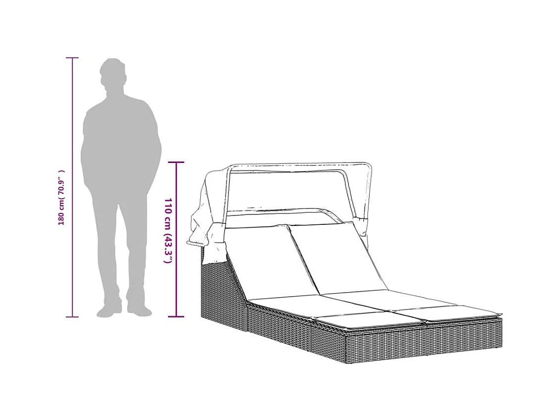 Espreguiçadeira dupla e toldo e almofadas de resina tecida cinza