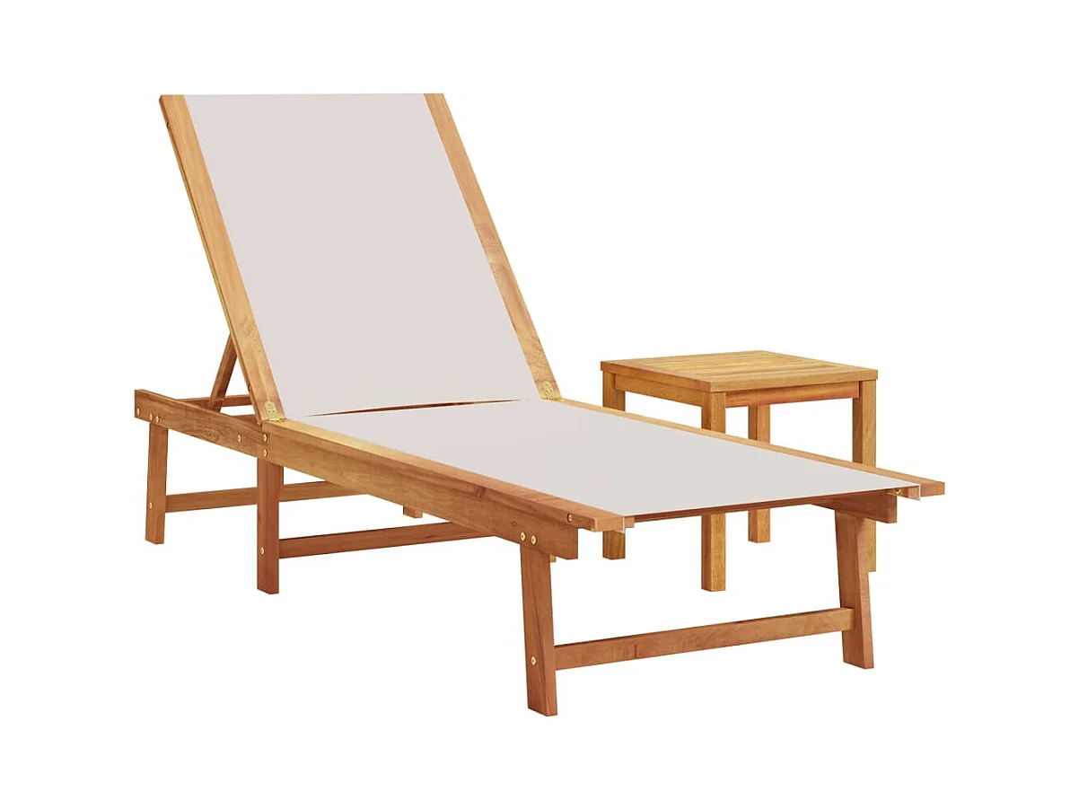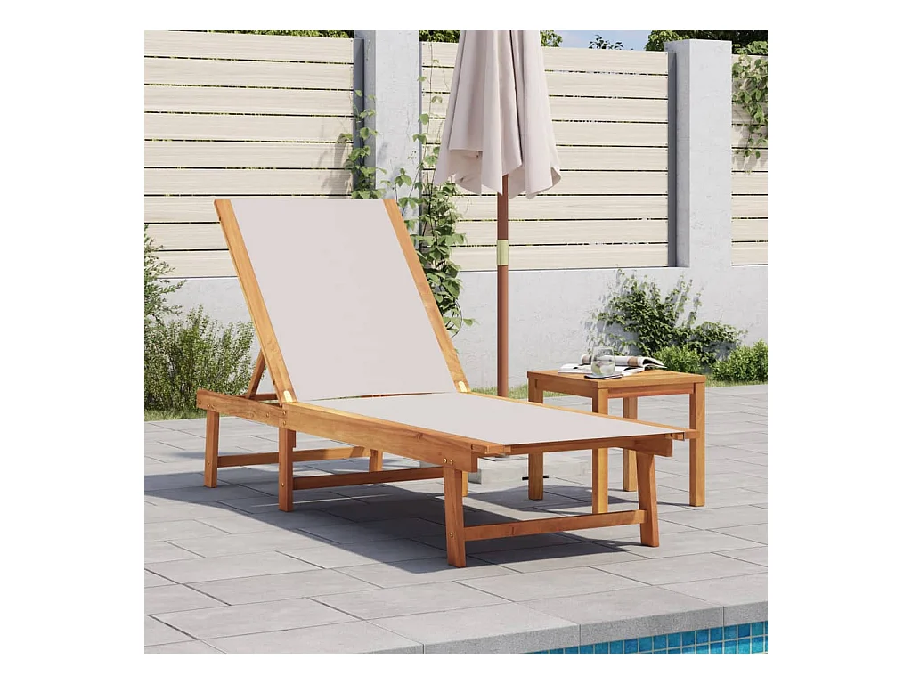 Espreguiçadeira e mesa taupe, madeira maciça de acácia e textilene