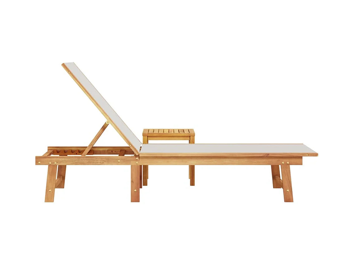 Espreguiçadeira com almofada e mesa em madeira maciça de acácia