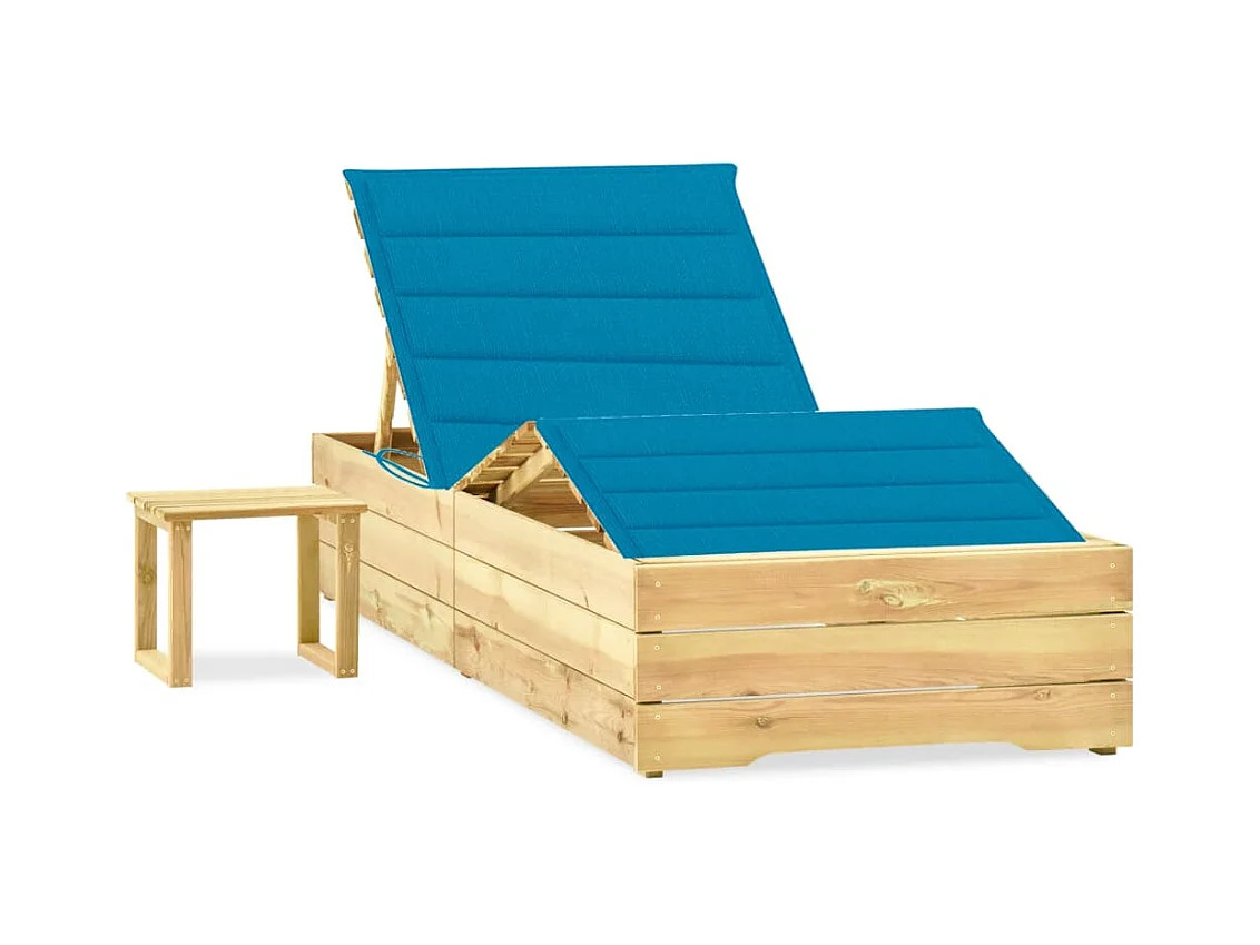Espreguiçadeira espreguiçadeira espreguiçadeira cama de jardim terraço mobiliário de exterior 198 cm com mesa e almofada de pinho impregnada 02_0012677