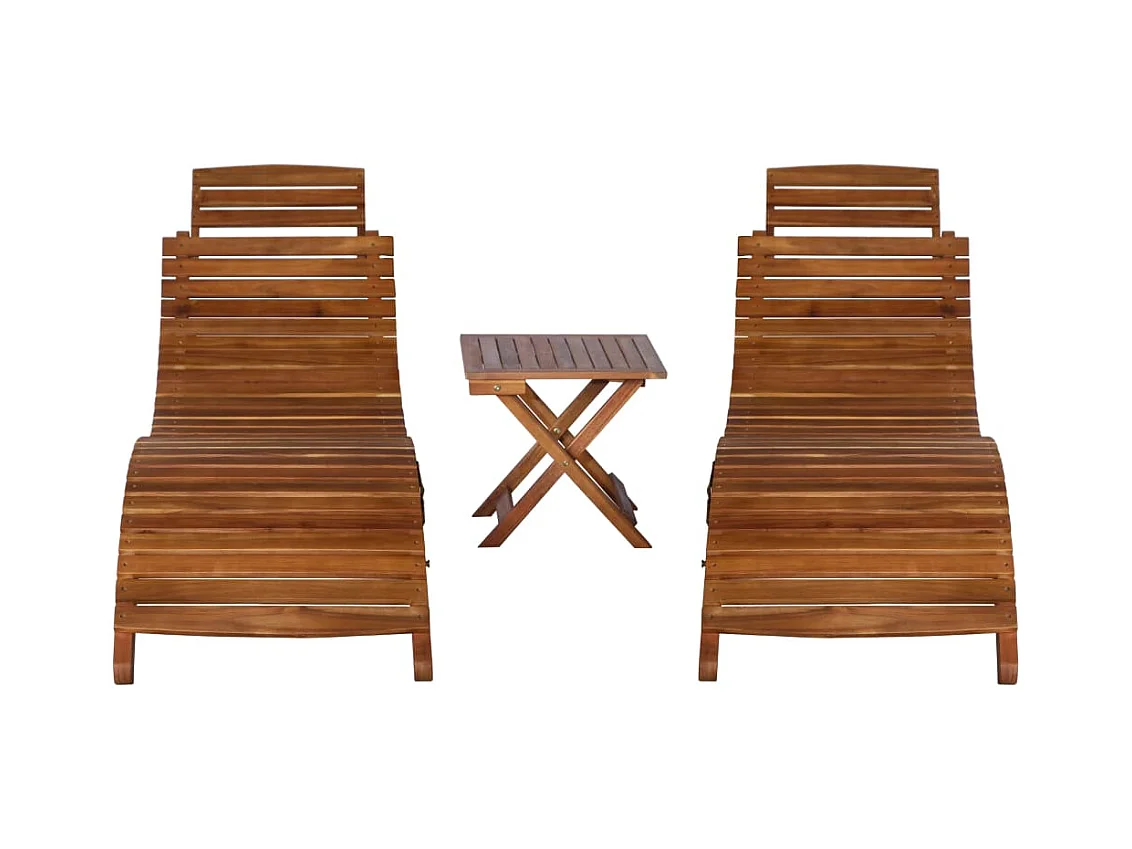 Espreguiçadeira espreguiçadeira para banhos de sol cama de jardim terraço móveis ao ar livre com mesa de chá 3 peças madeira de acácia maciça 02_0012693