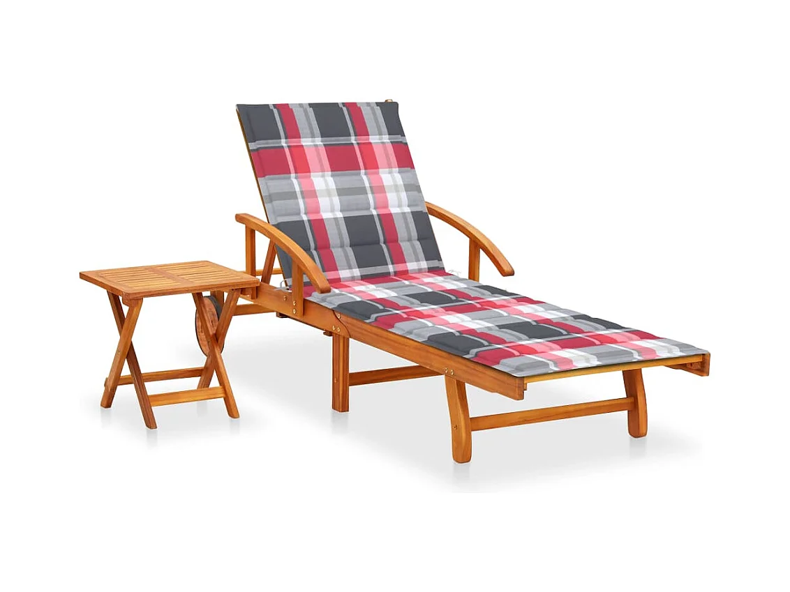 Espreguiçadeira espreguiçadeira para banhos de sol cama de jardim terraço móveis de exterior com mesa e almofada madeira de acácia 02_0012610