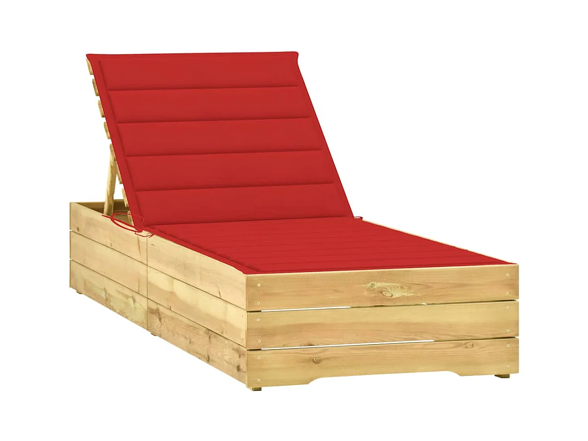 Espreguiçadeira espreguiçadeira para banhos de sol jardim cama terraço mobiliário de exterior com almofada vermelha madeira de pinho impregnada 02_0012502