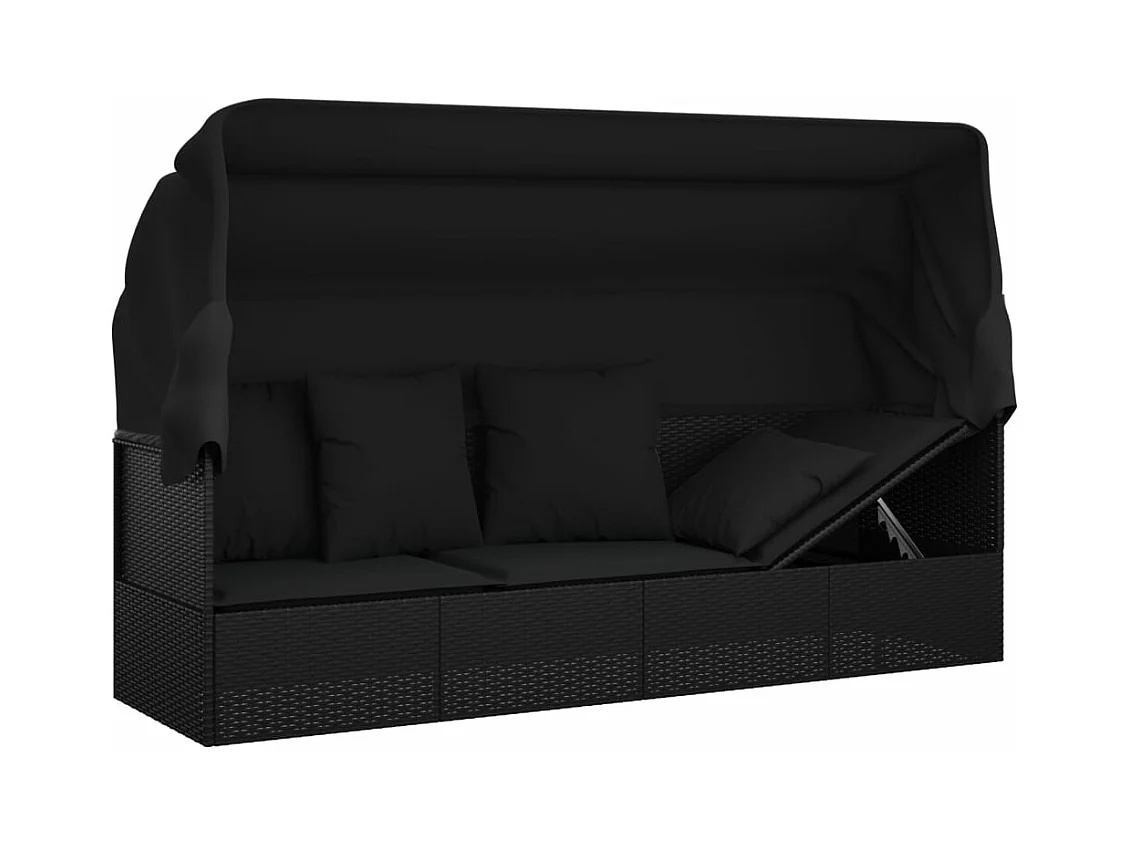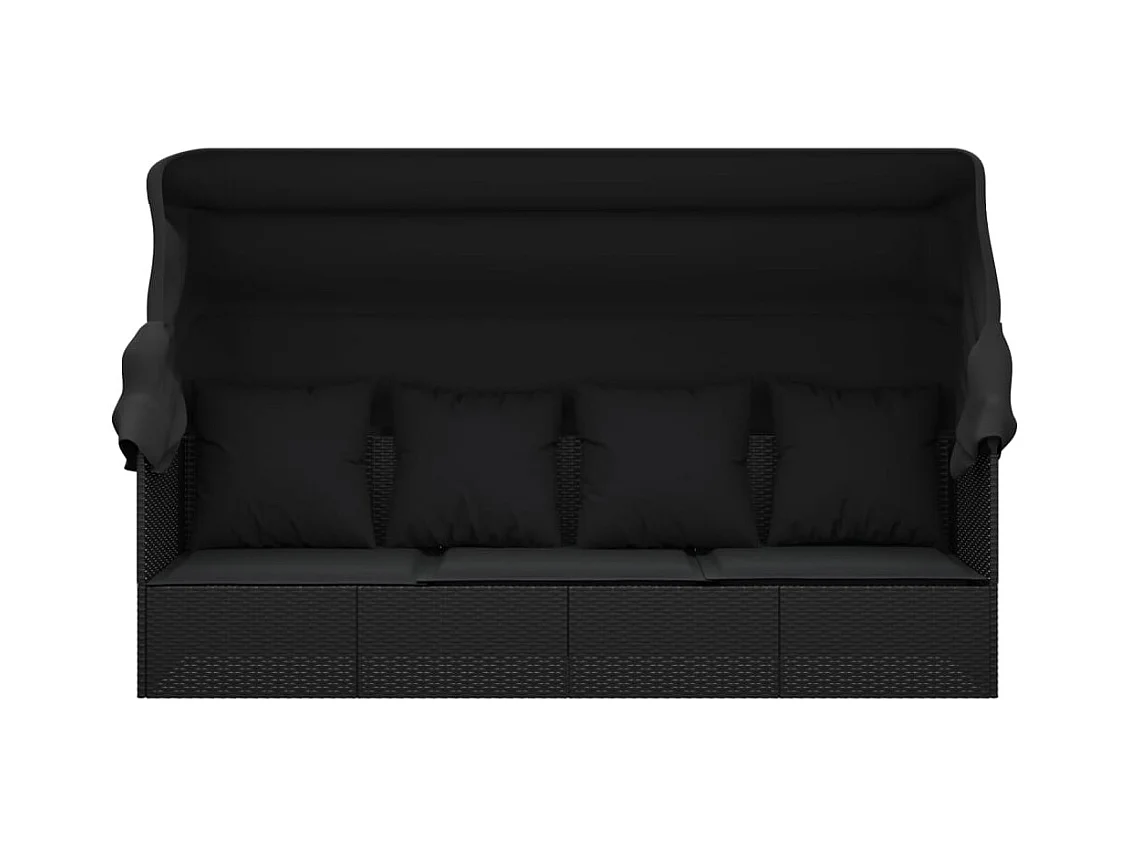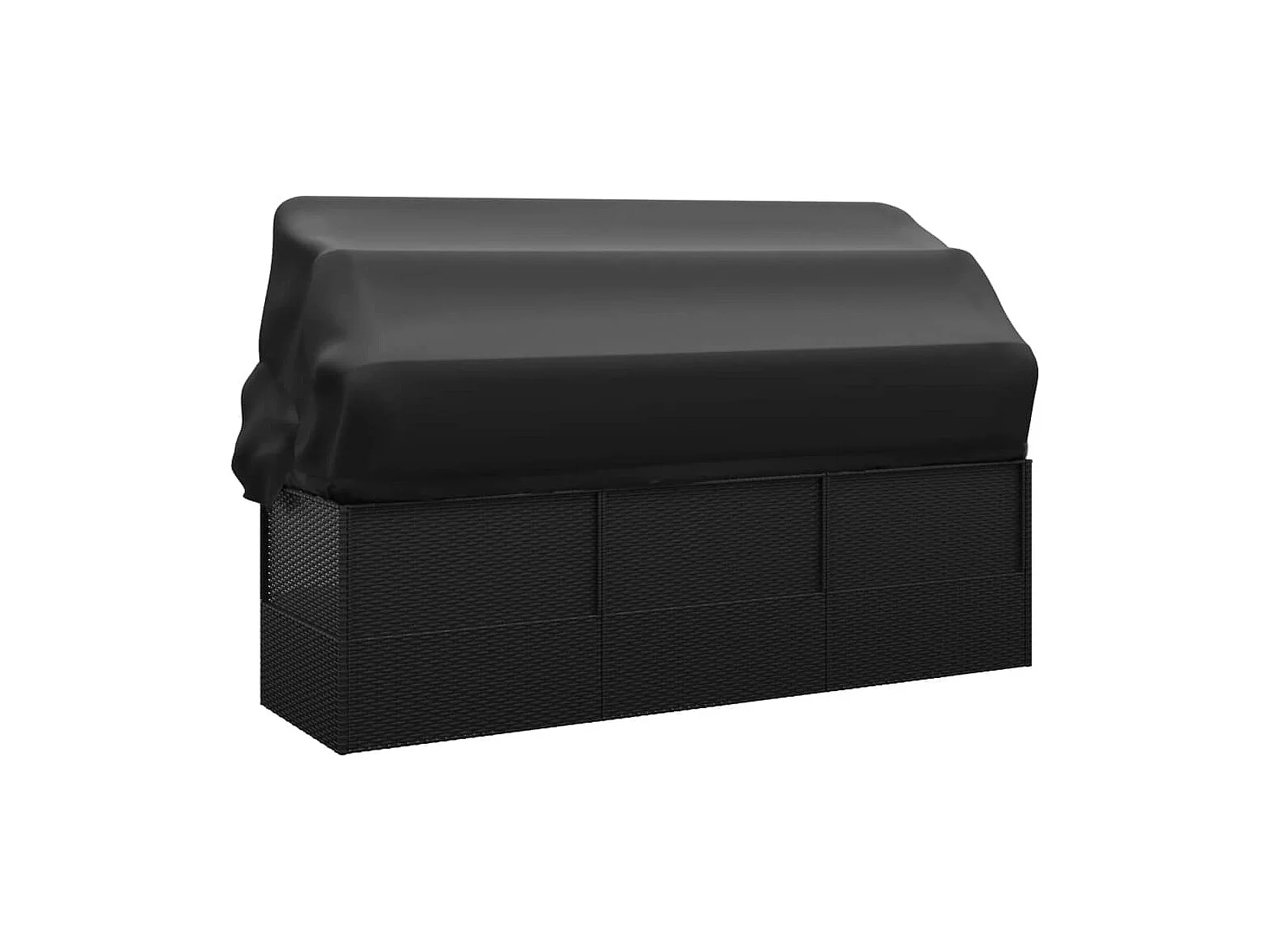 Espreguiçadeira externa com teto e almofadas 203 x 58 x 56 cm resina tecida preta 02_0012023