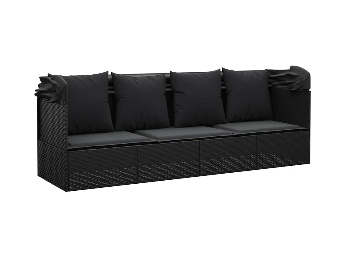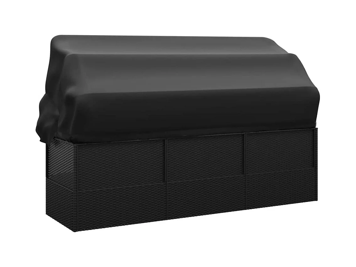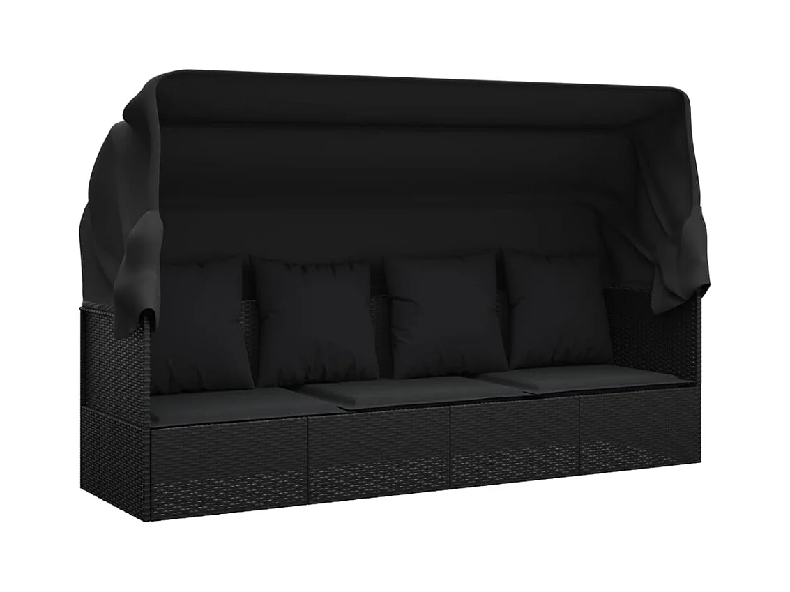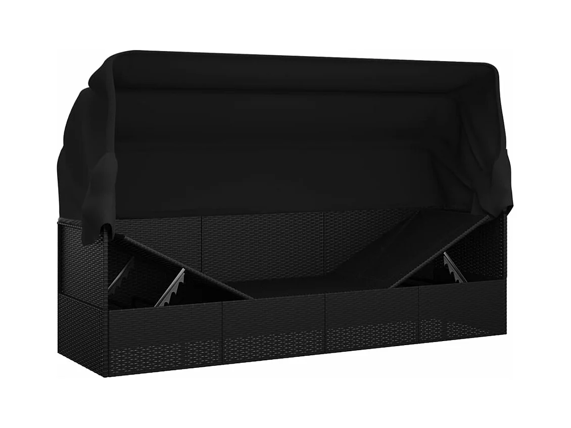Espreguiçadeira externa com teto e almofadas 203 x 58 x 56 cm resina tecida preta 02_0012023