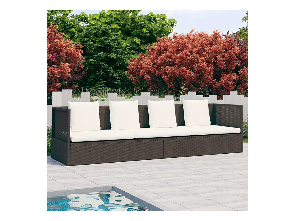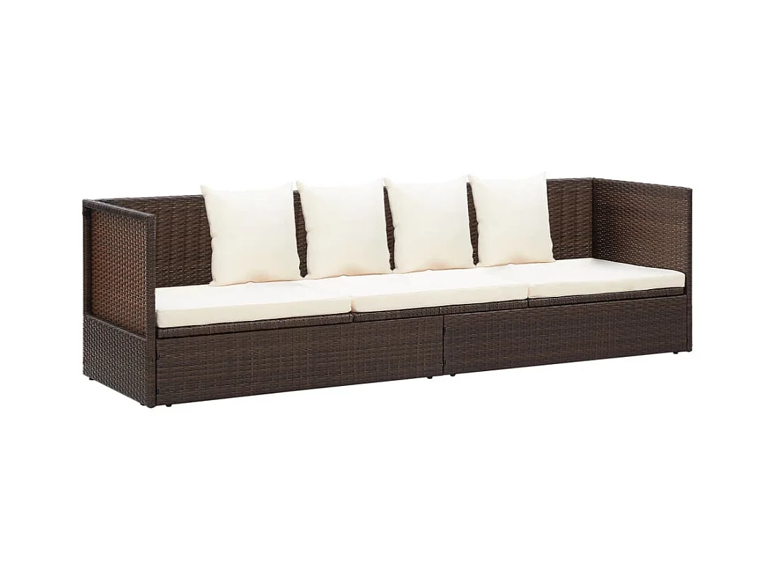 Sofá de jardim com almofadões 3 lugares vime PE castanho