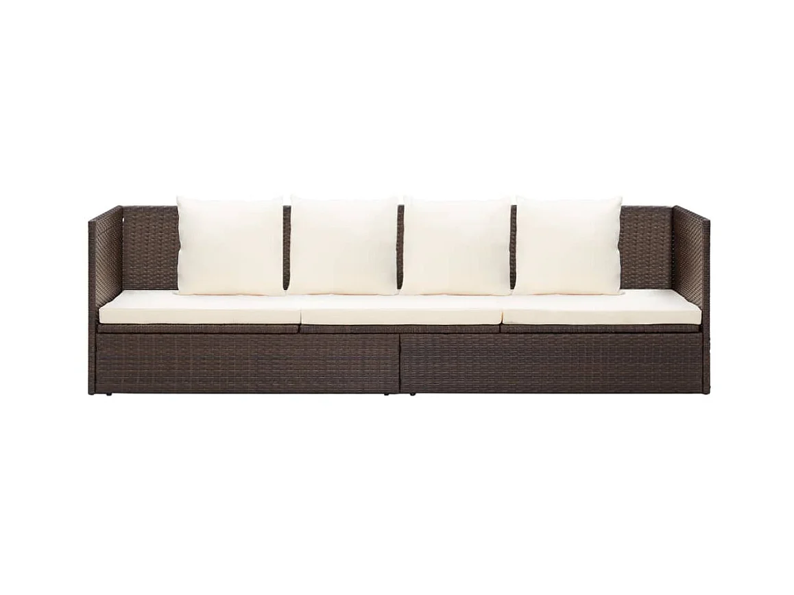 Espreguiçadeira jardim c/ almofadão+almofadas vime PE castanho PT448405