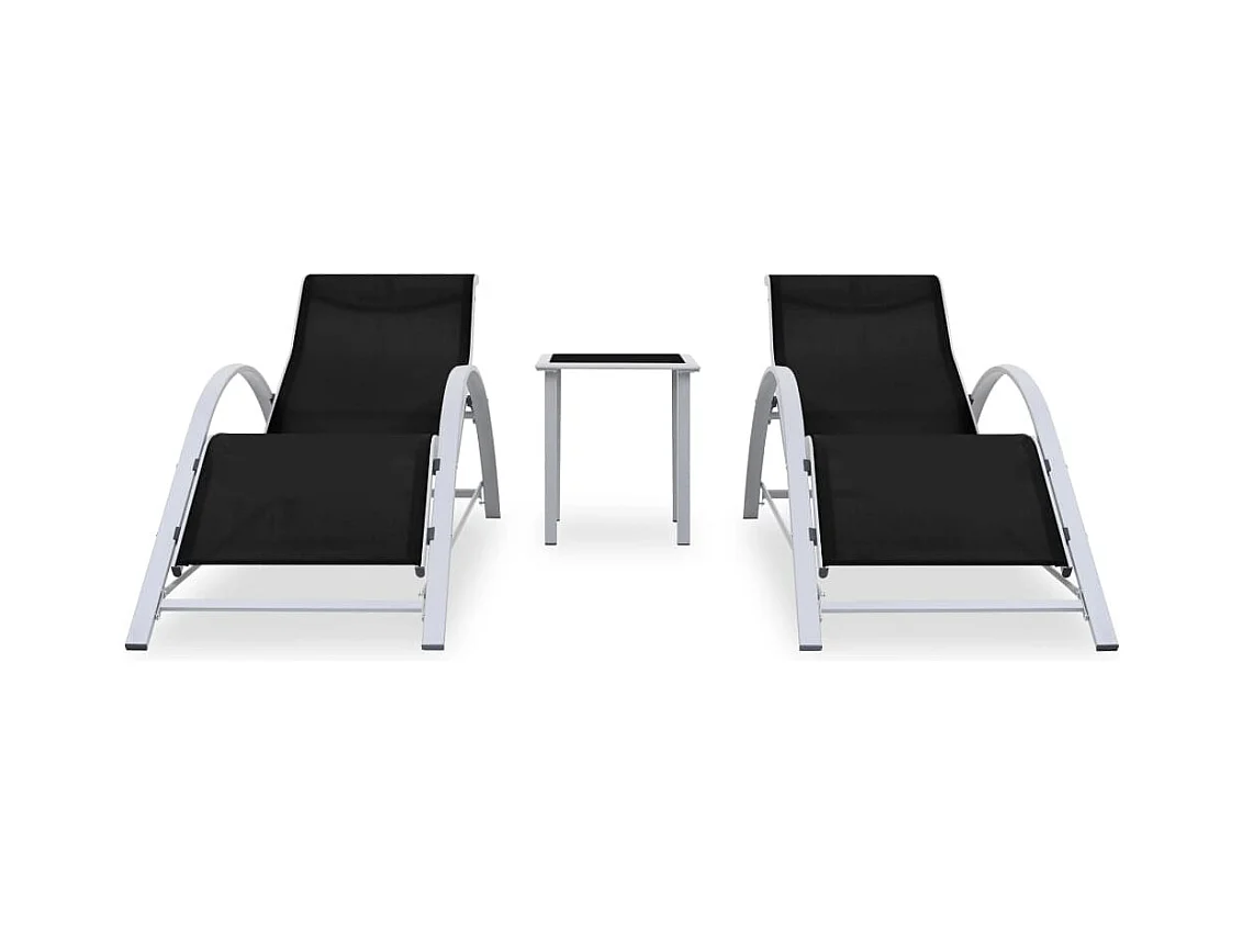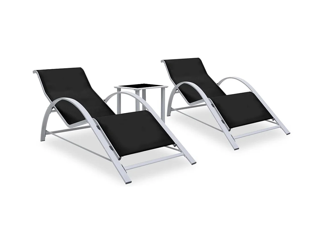 Espreguiçadeiras com mesa 2 pcs alumínio preto
