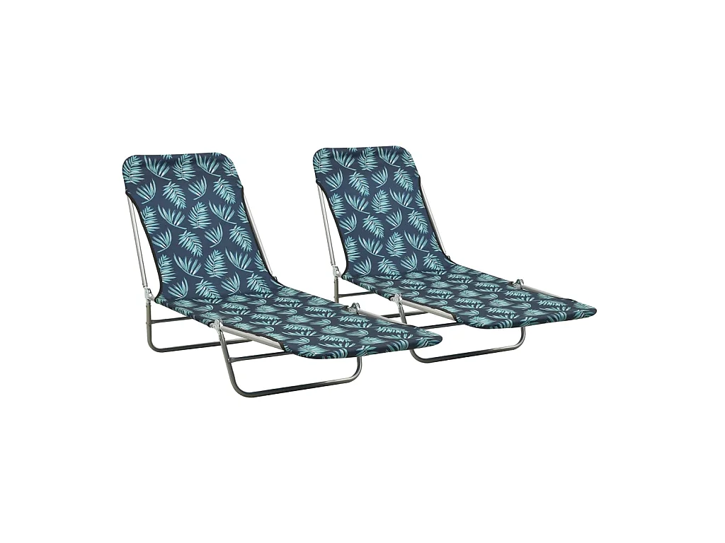 Espreguiçadeiras dobráveis 2 peças Aço e tecido Padrão de folhas