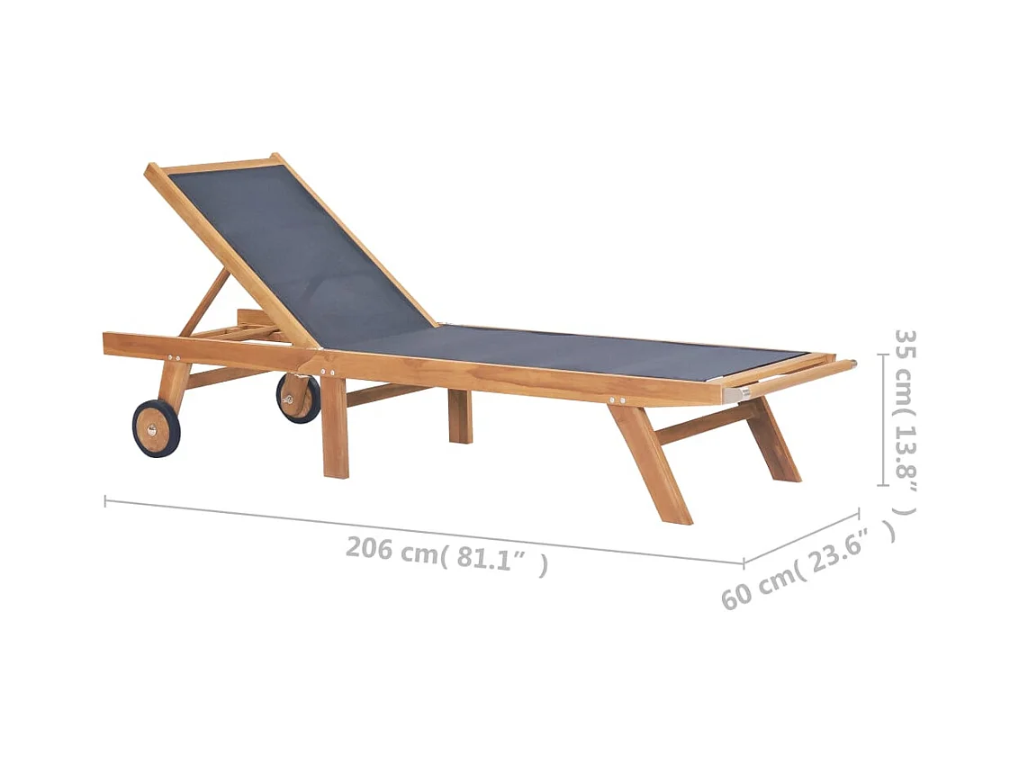 Espreguiçadeiras dobráveis c/ rodas 2 pcs teca maciça/textilene
