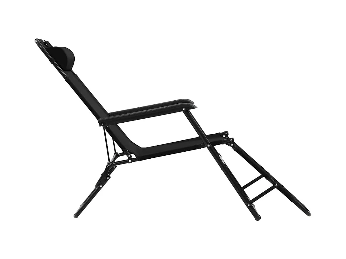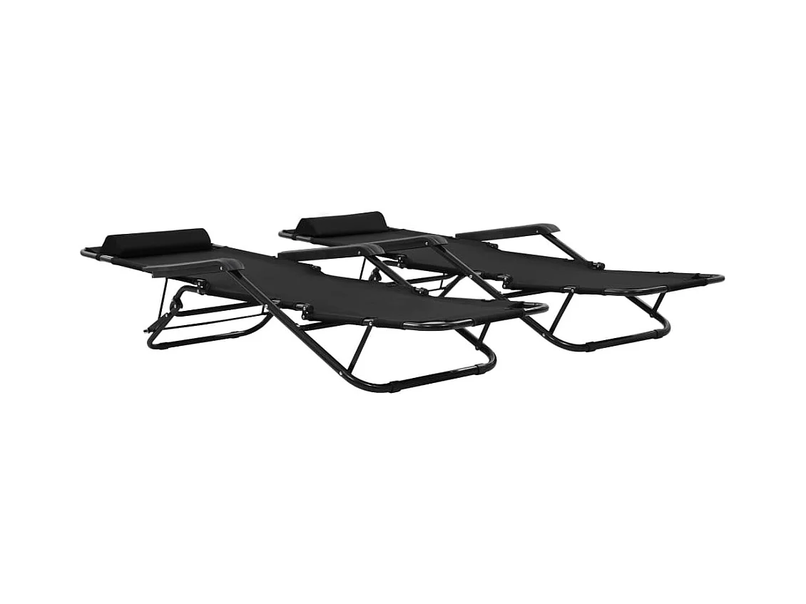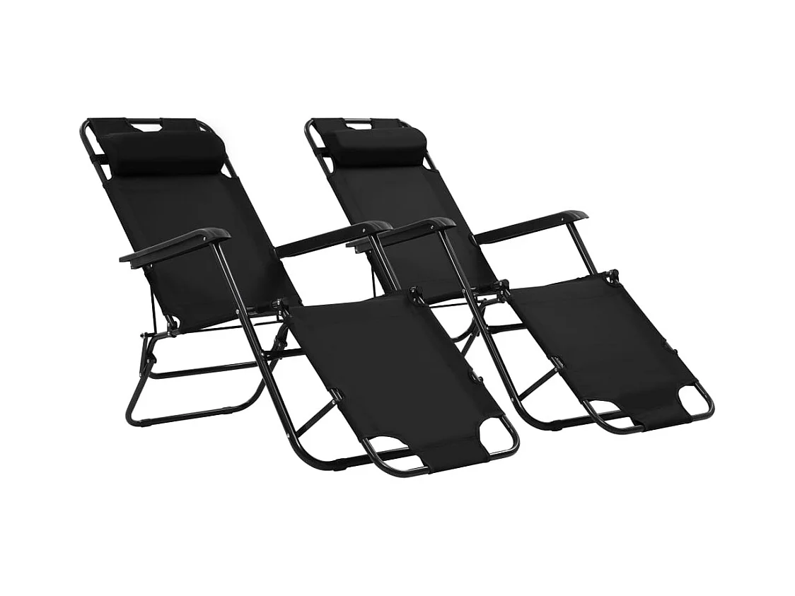 Espreguiçadeiras dobráveis com apoios de pé 2 pcs aço preto
