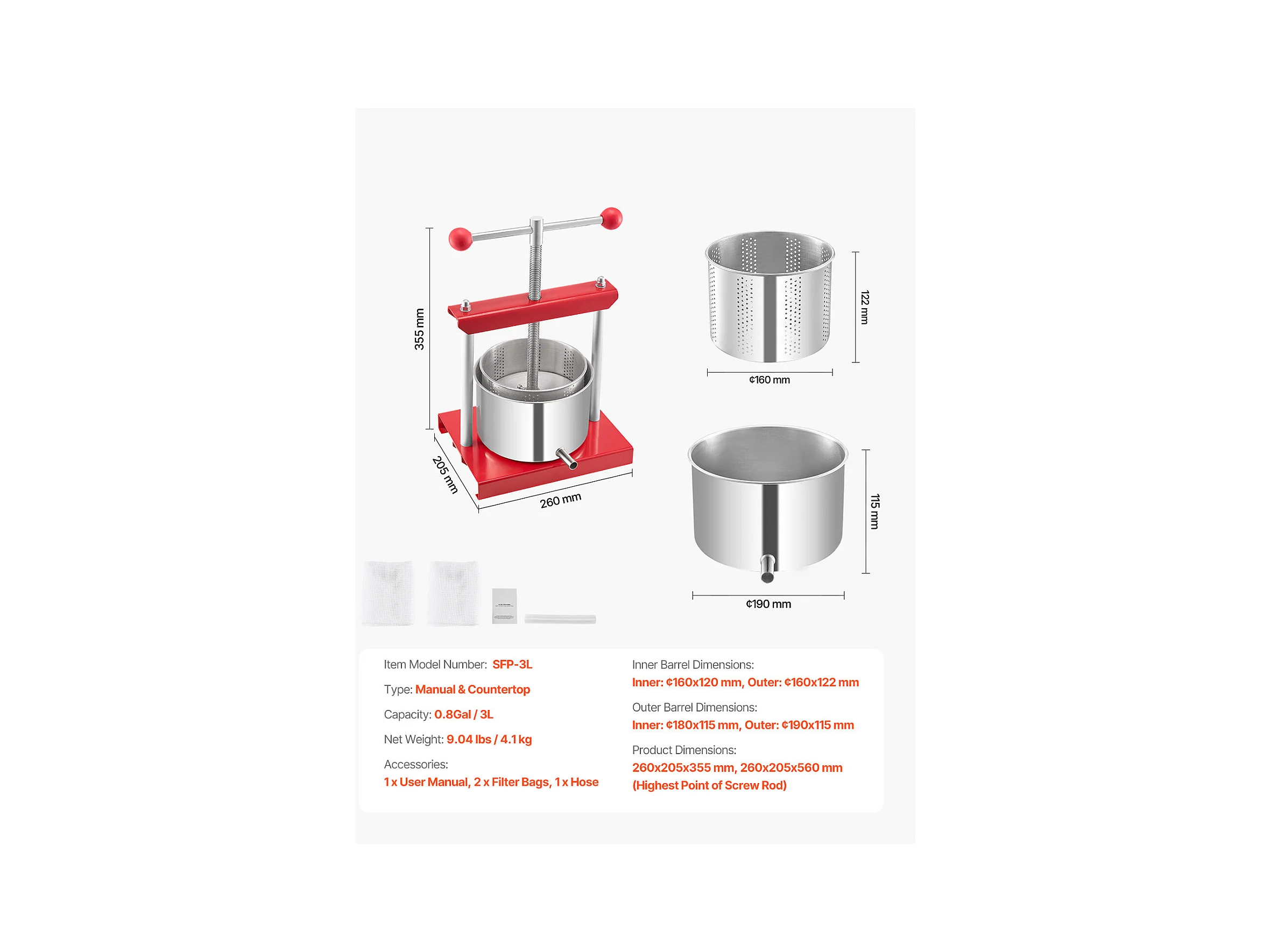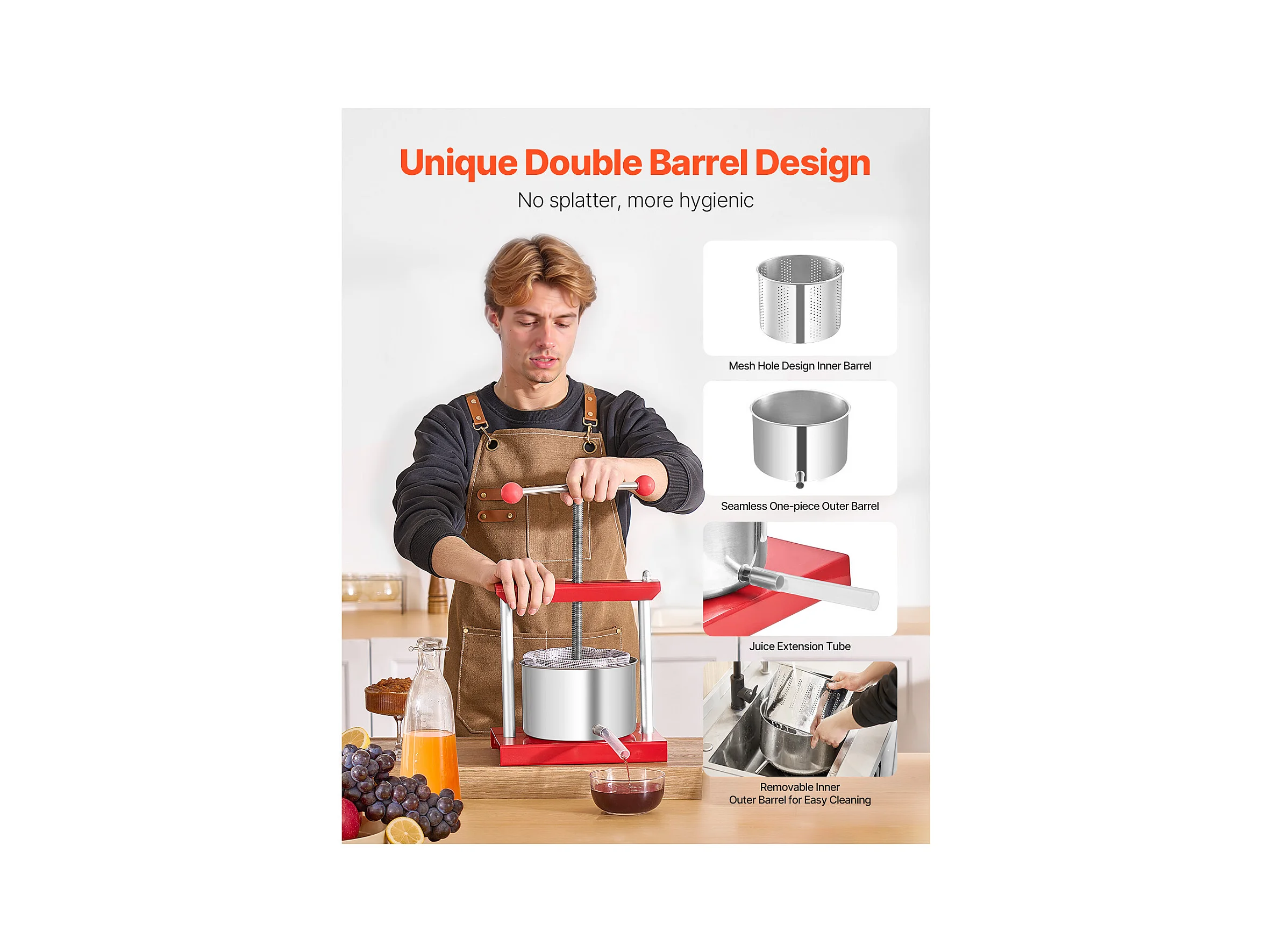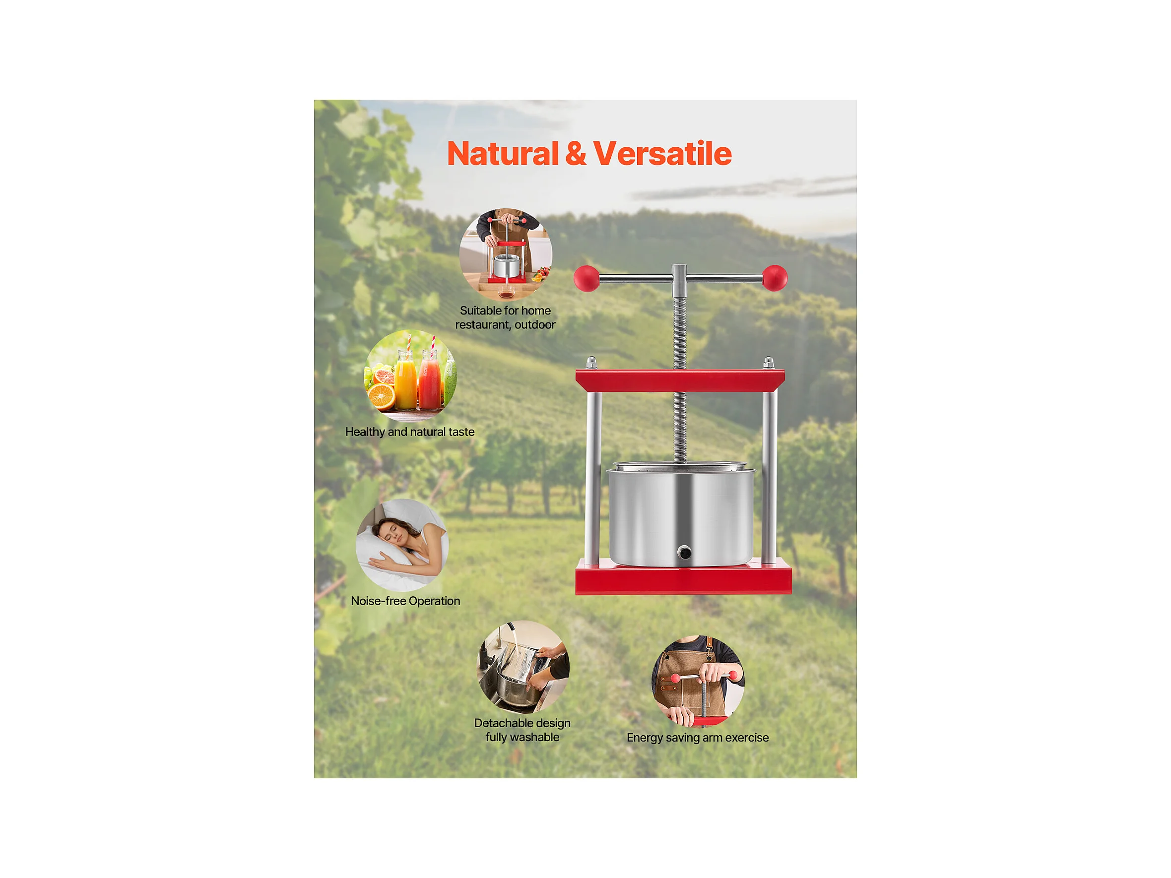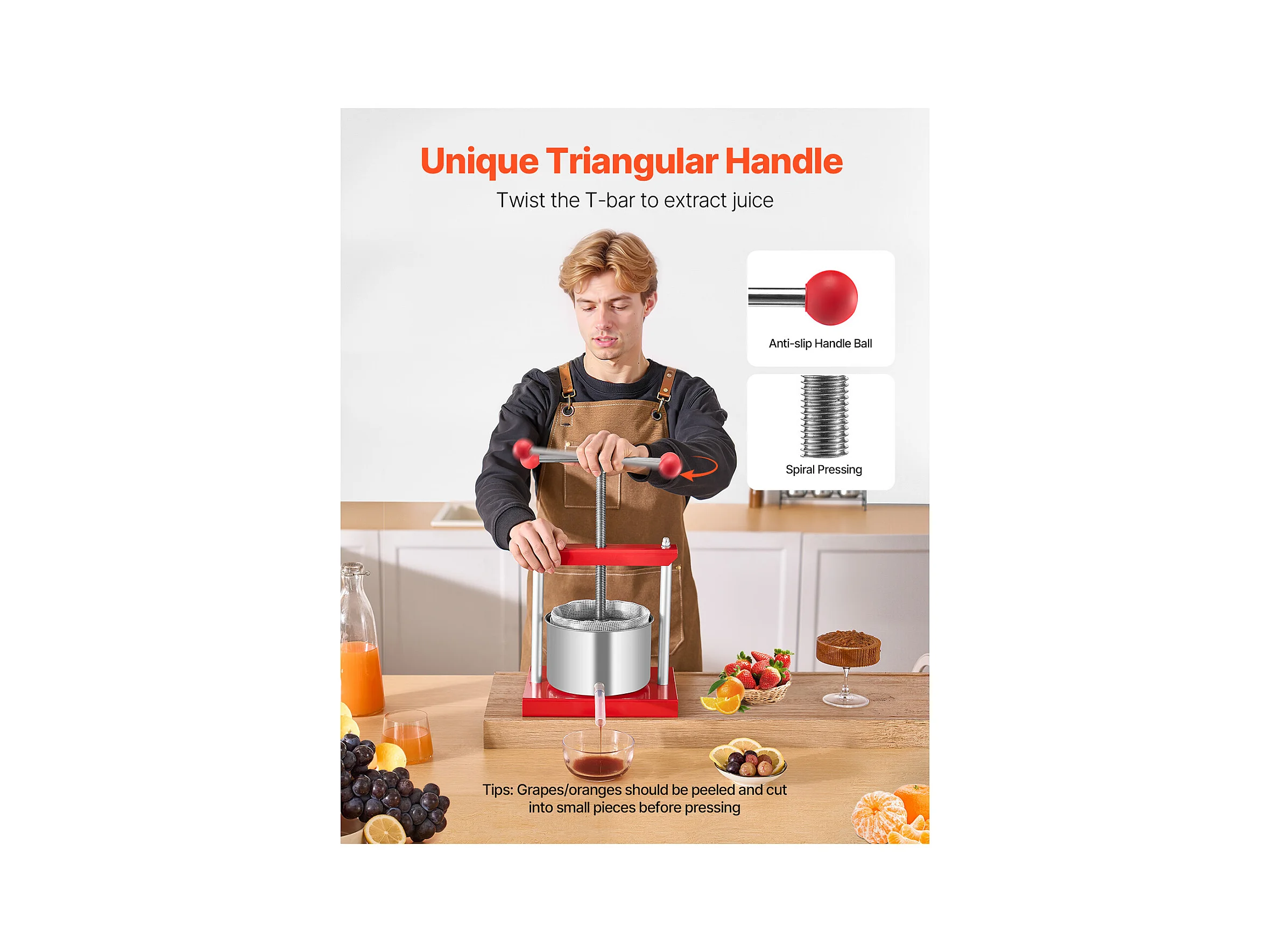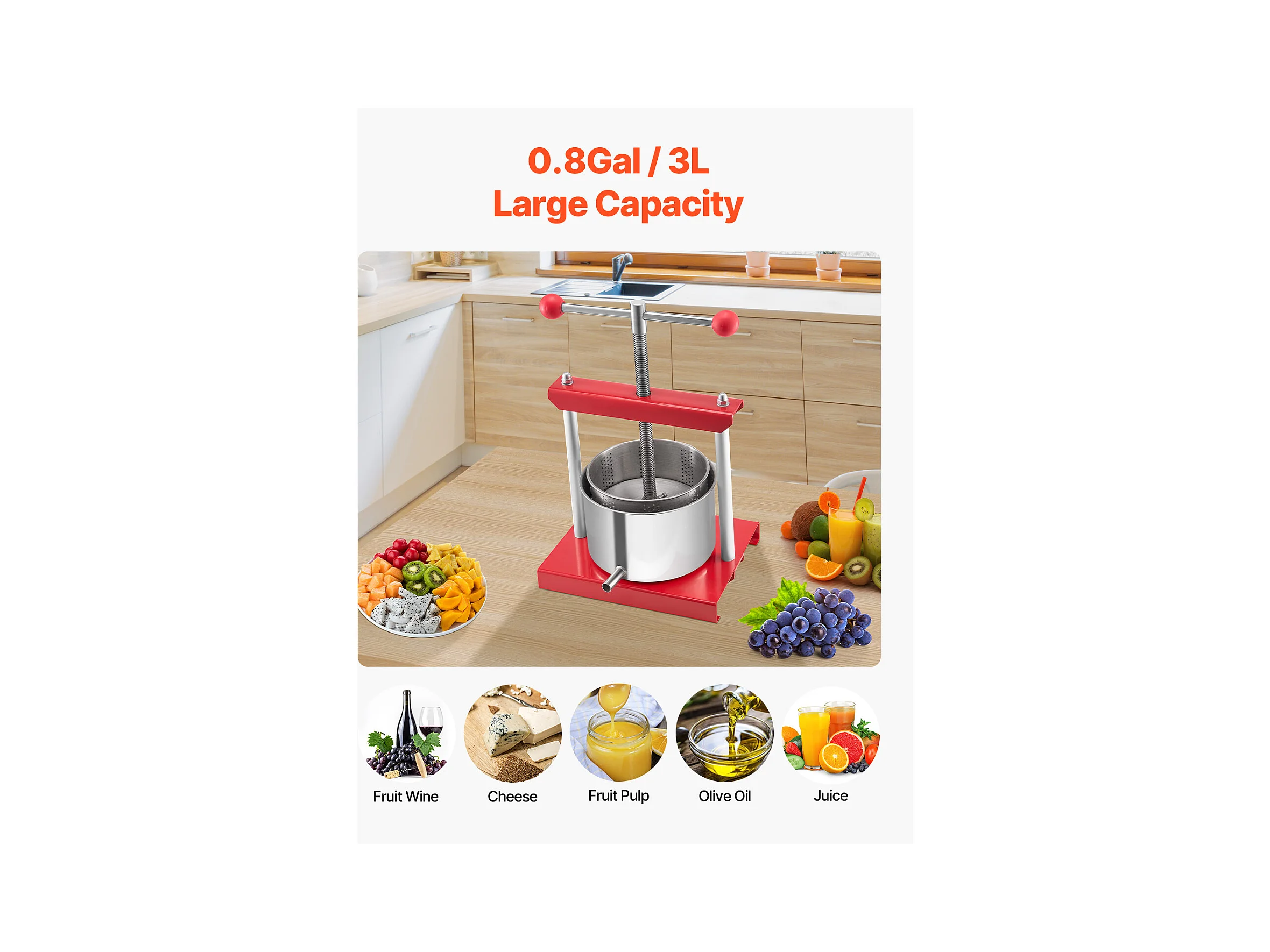 Espremedor de Fruta SucceBuy Prensa Manual de Frutas e Vinho de 3 L em Aço Inoxidável para Fabrico de Cerveja Caseira.