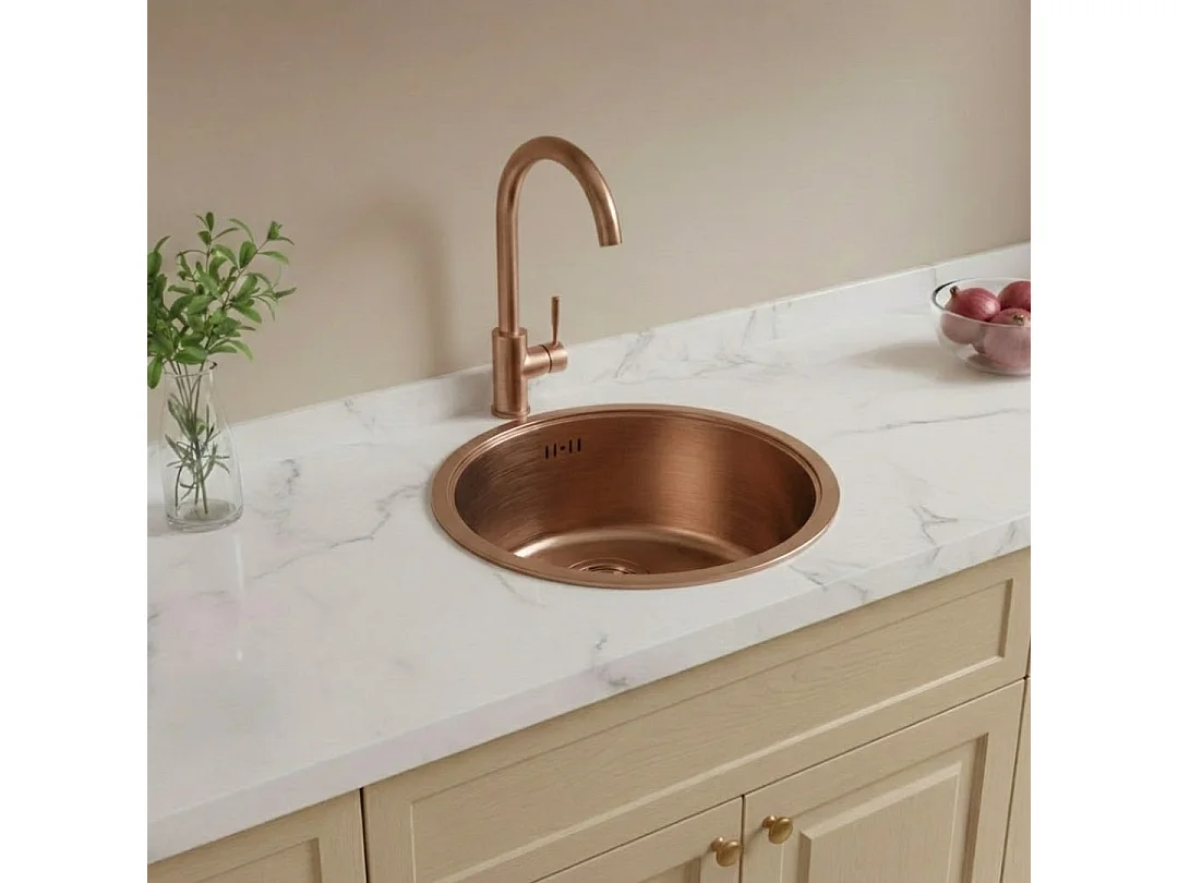 Essenox lava-loiça 1 cuba redonda em aço inox 42.5cm cobre escovado Essebagno