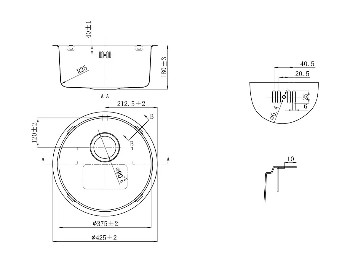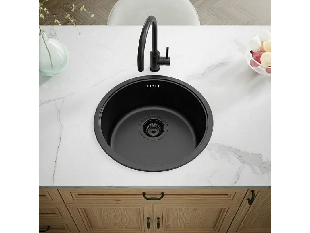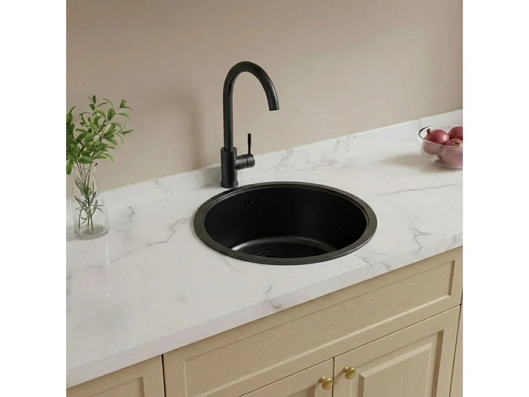 Essenox lava-loiça 1 cuba redonda em aço inox 42.5cm preto Essebagno