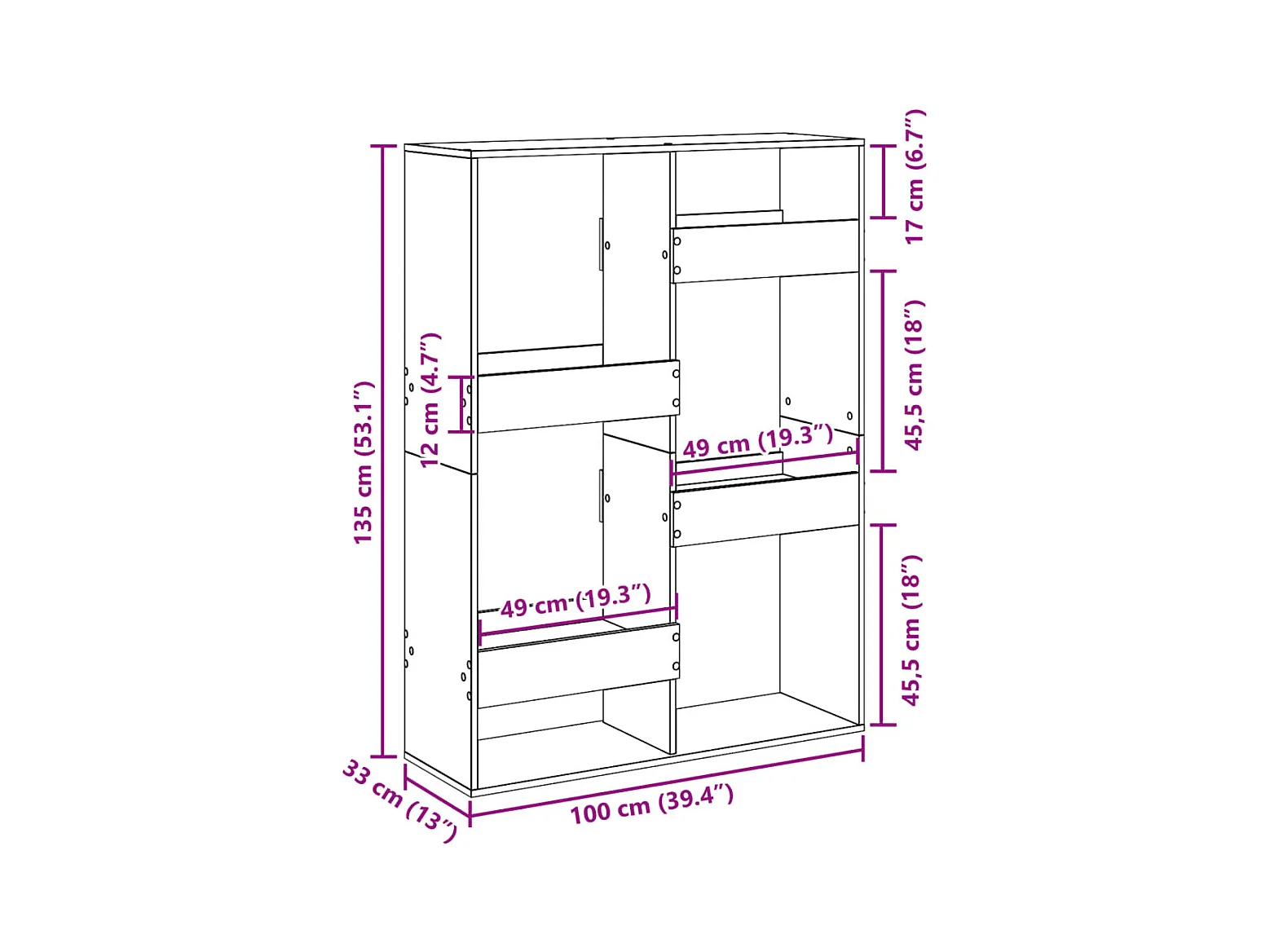 Estante 100x33x135 cm derivados de madeira cinzento sonoma