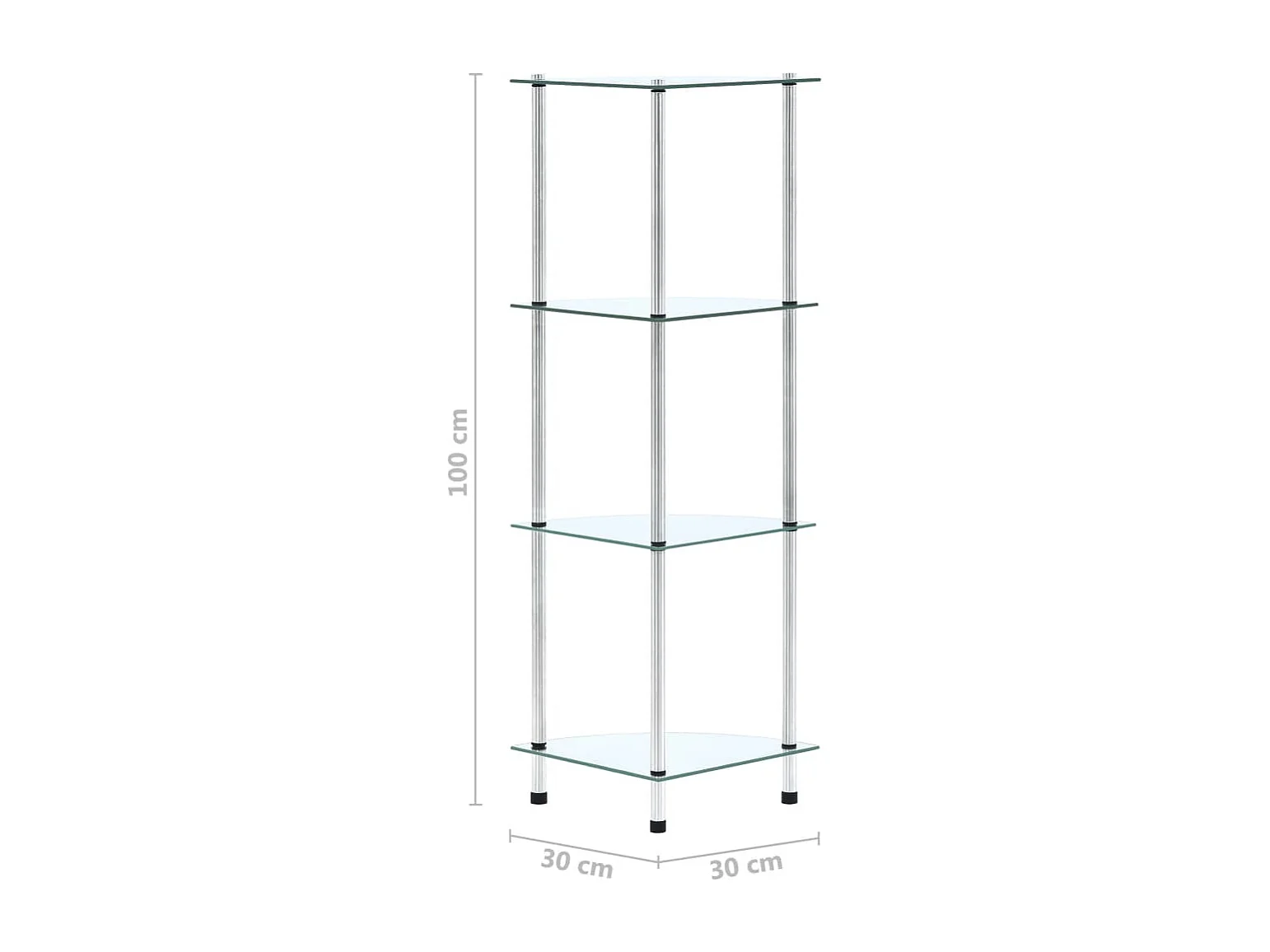 Estante 4 prateleiras 30x30x100 cm vidro temperado transparente