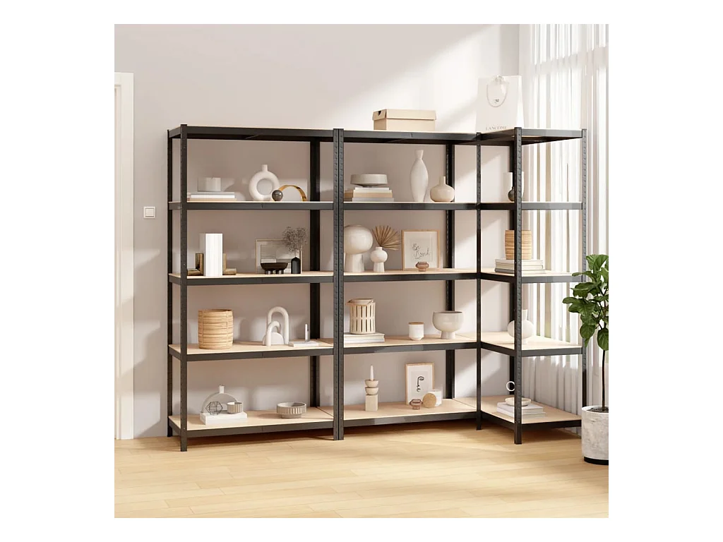 Estante 5 prateleiras 3 pcs madeira processada/aço antracite PT772677