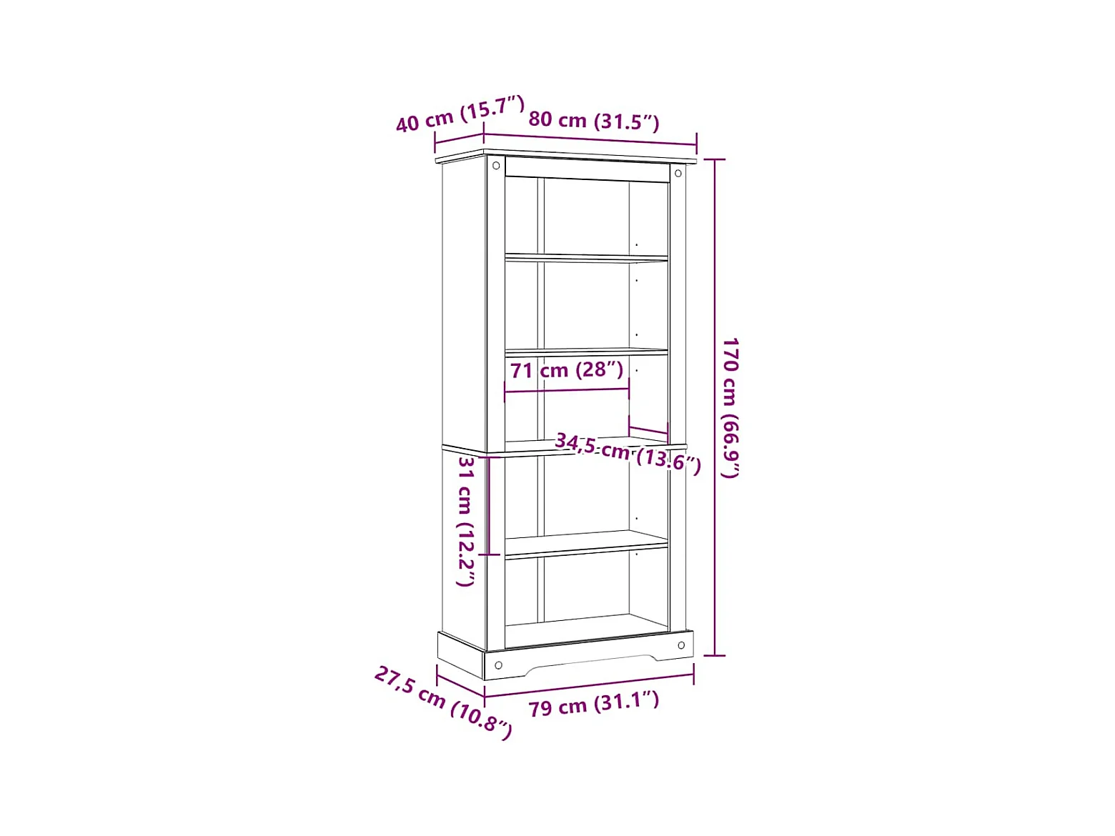 Estante 5 prateleiras Corona Range 80x40x170 cm pinho mexicano