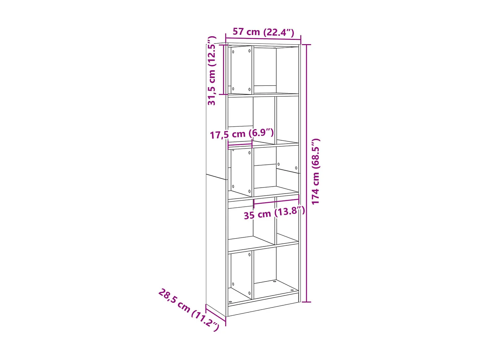 Estante 57x28,5x174 cm derivados de madeira preto