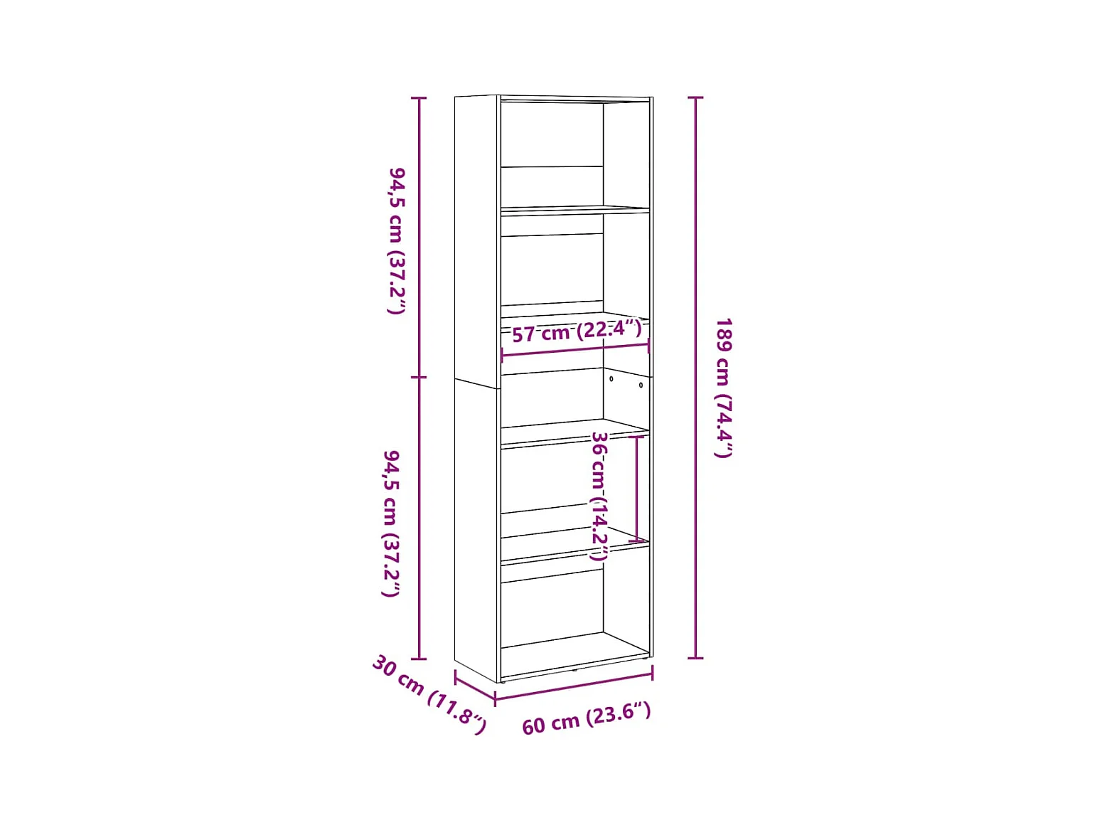 Estante 60x30x189 cm derivados de madeira branco