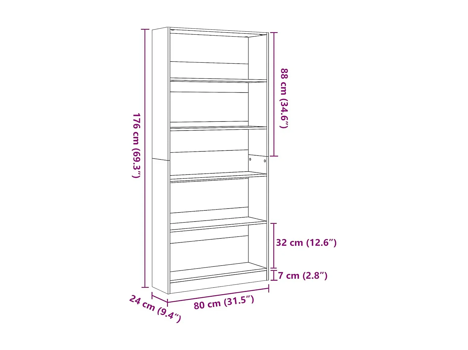 Estante 80x24x176 cm derivados de madeira branco brilhante
