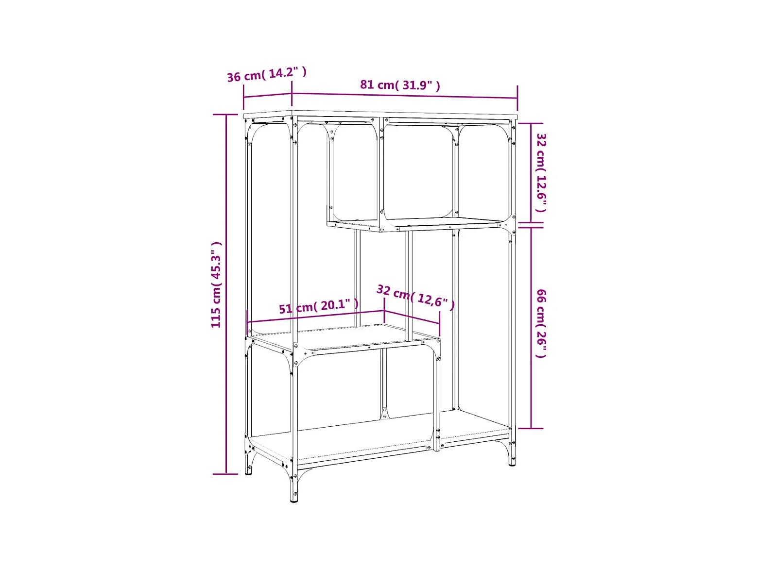 Estante 81x36x115 cm derivados de madeira e aço carvalho fumado