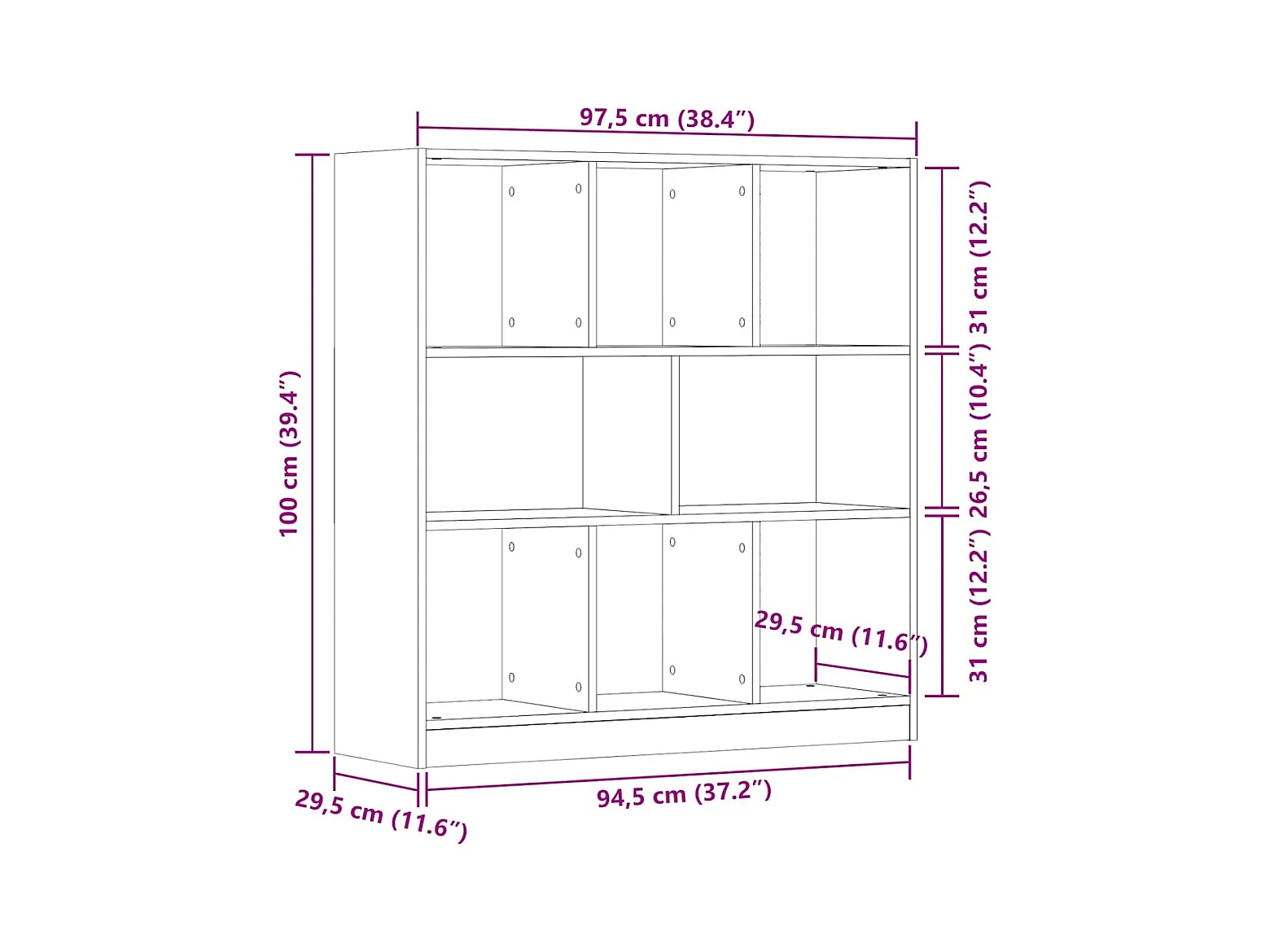 Estante 97,5x29,5x100 cm contraplacado madeira velha