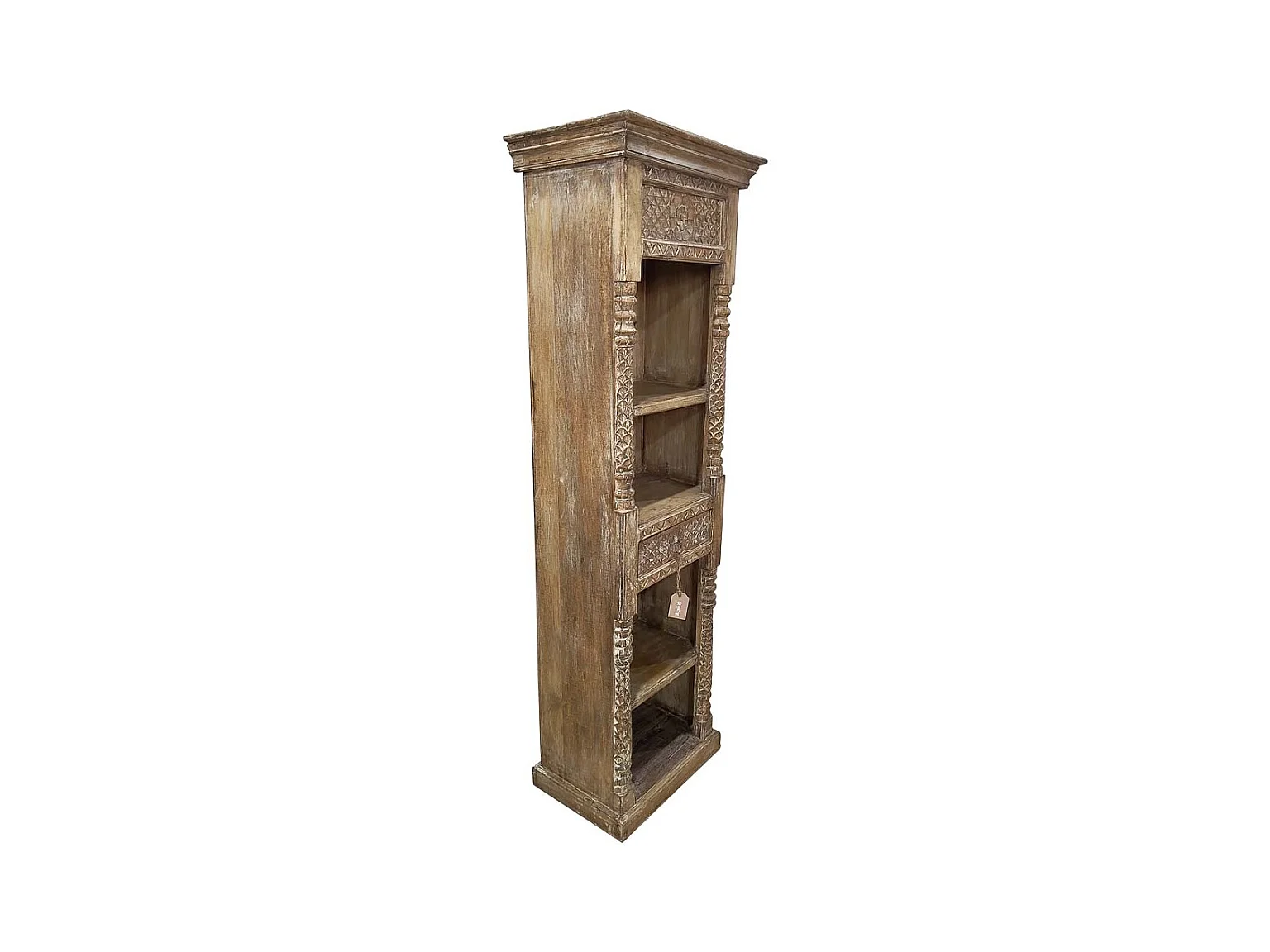 Estante artesanal em madeira castanha com 4 prateleiras, 106x43x180cm