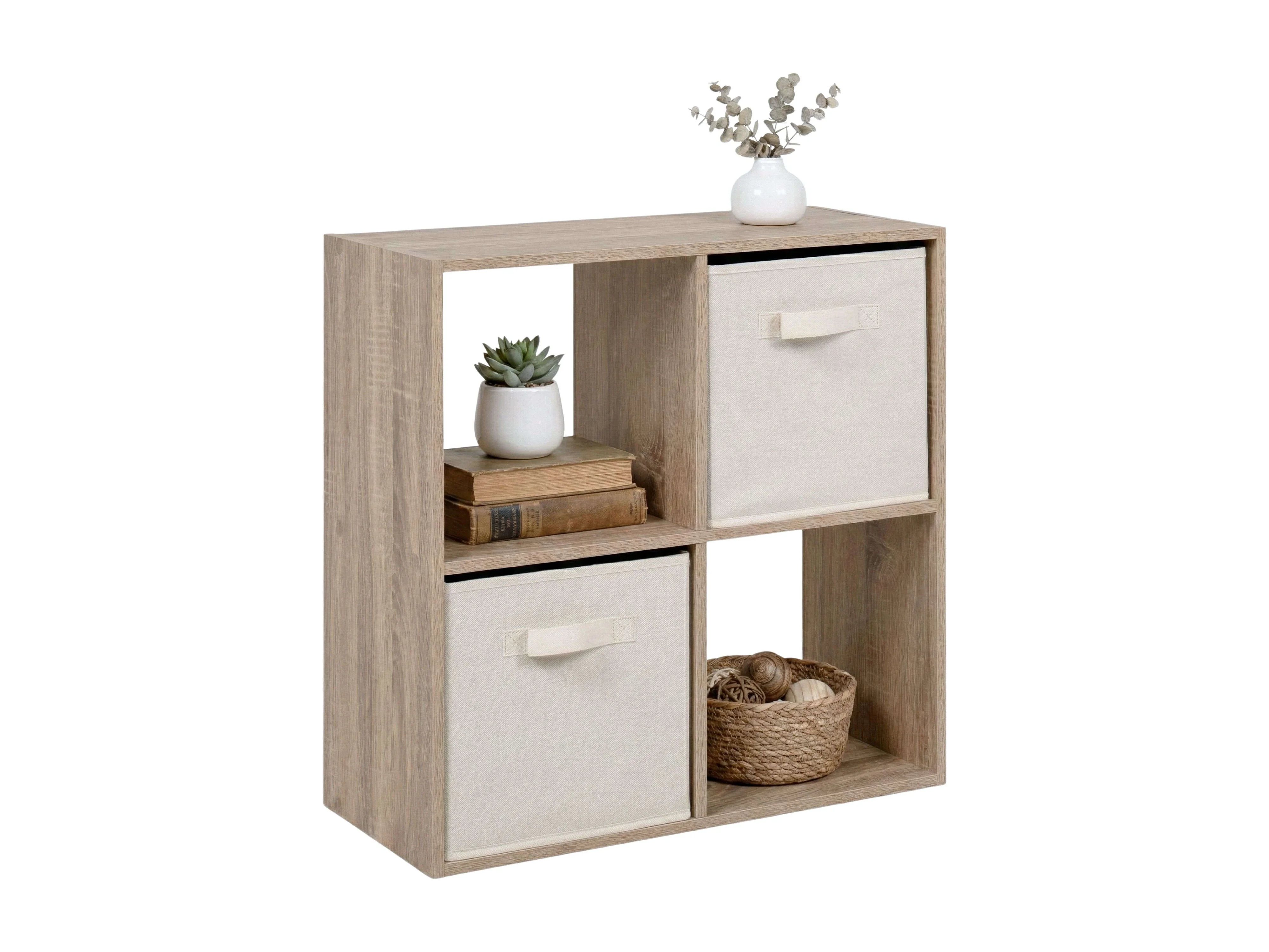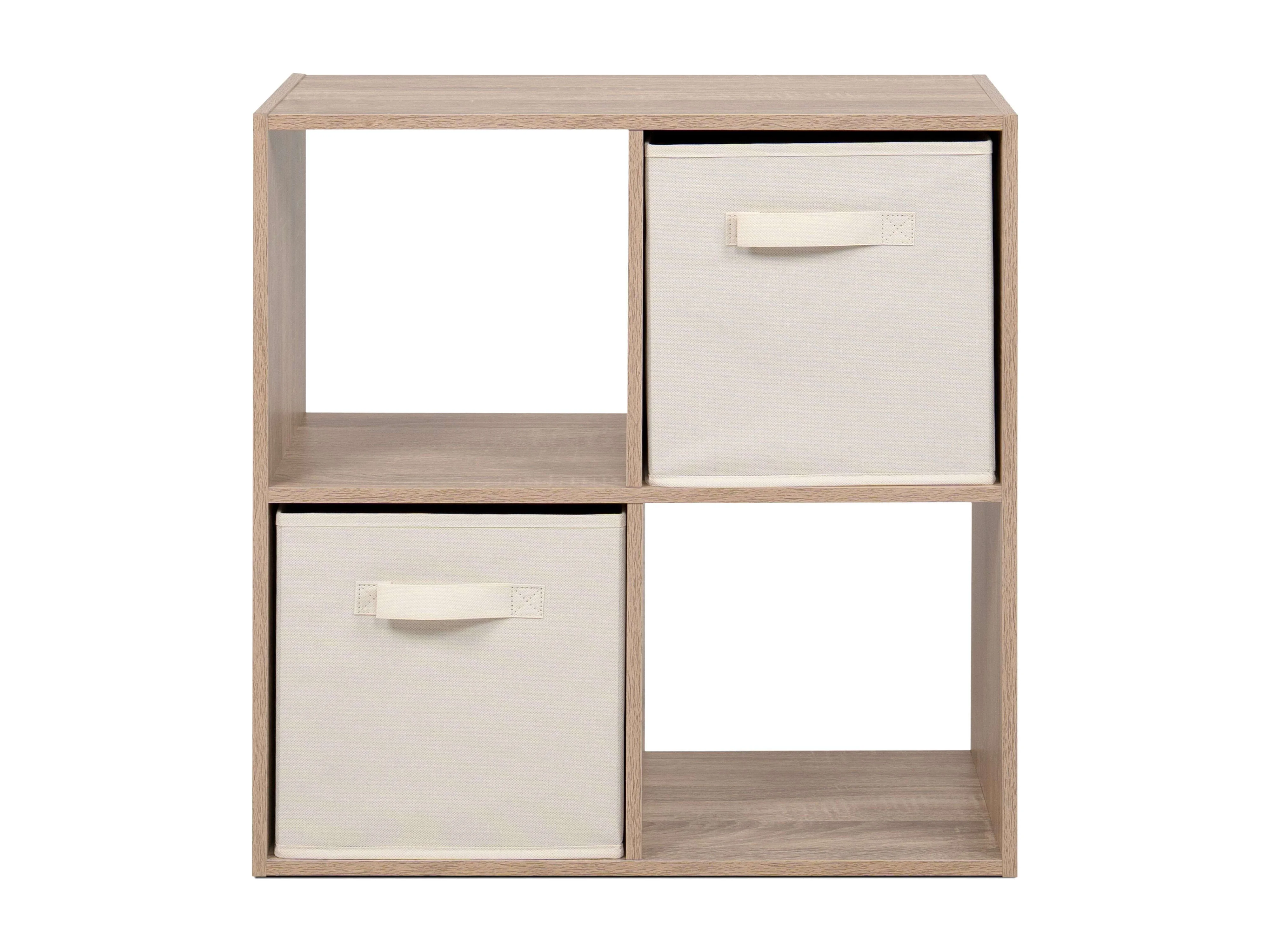 Estante baixa Abril, 2 compartimentos, 2 gavetas, tecido Carvalho Sonoma, bege, 60x60x28cm